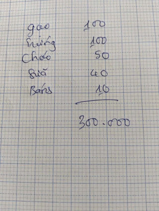 Em đã trao quà CMTX t4 nhu yếu phẩm 300.000 đ (gồm 200.000d gạo và thực phẩm 100.000d