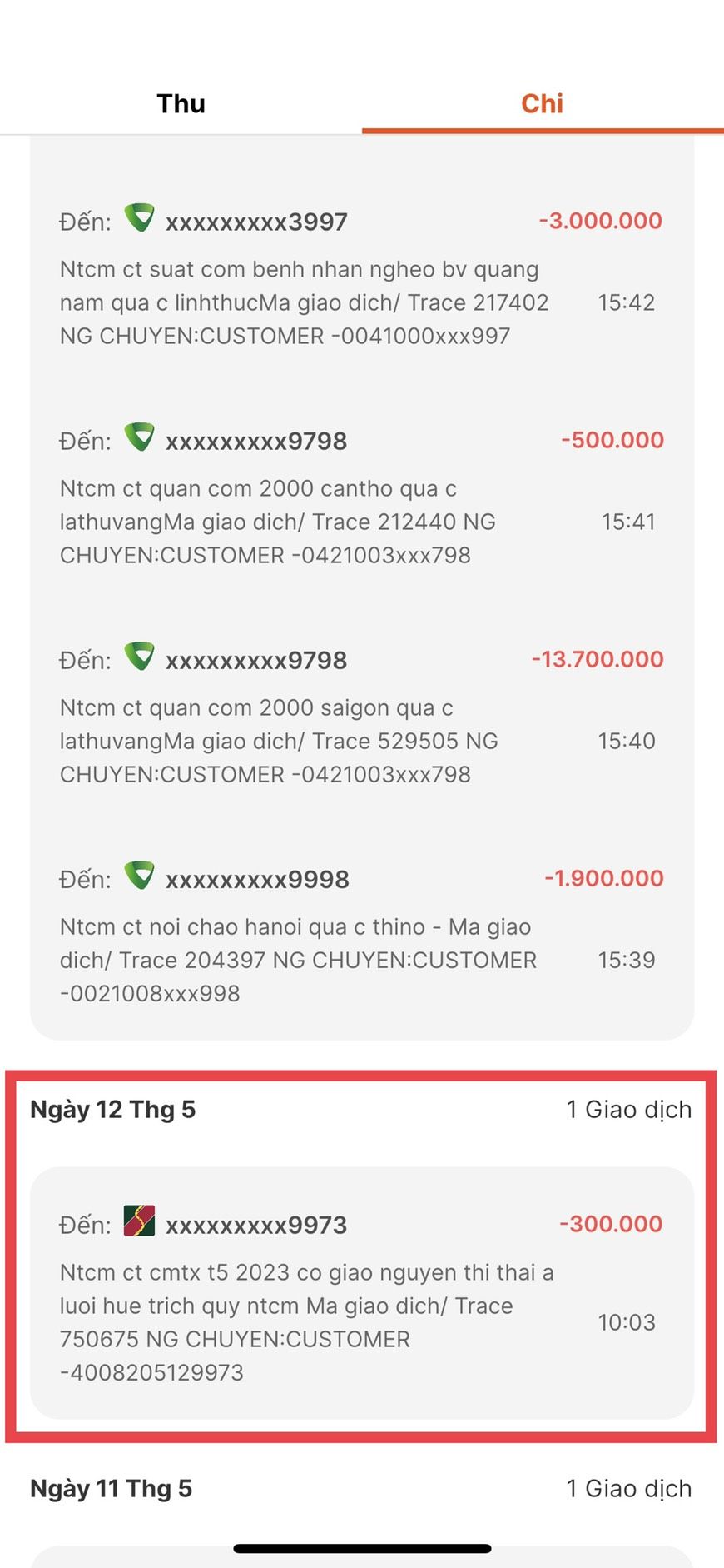 P/s: Ngày 12/6 cô báo nhận được 300.000đ, Vịt đoán 300.000đ là của tháng 5 vì ngày 12/6 Vịt mới chuyển CMTX tháng 6 (có thể tiền vào chậm hơn).