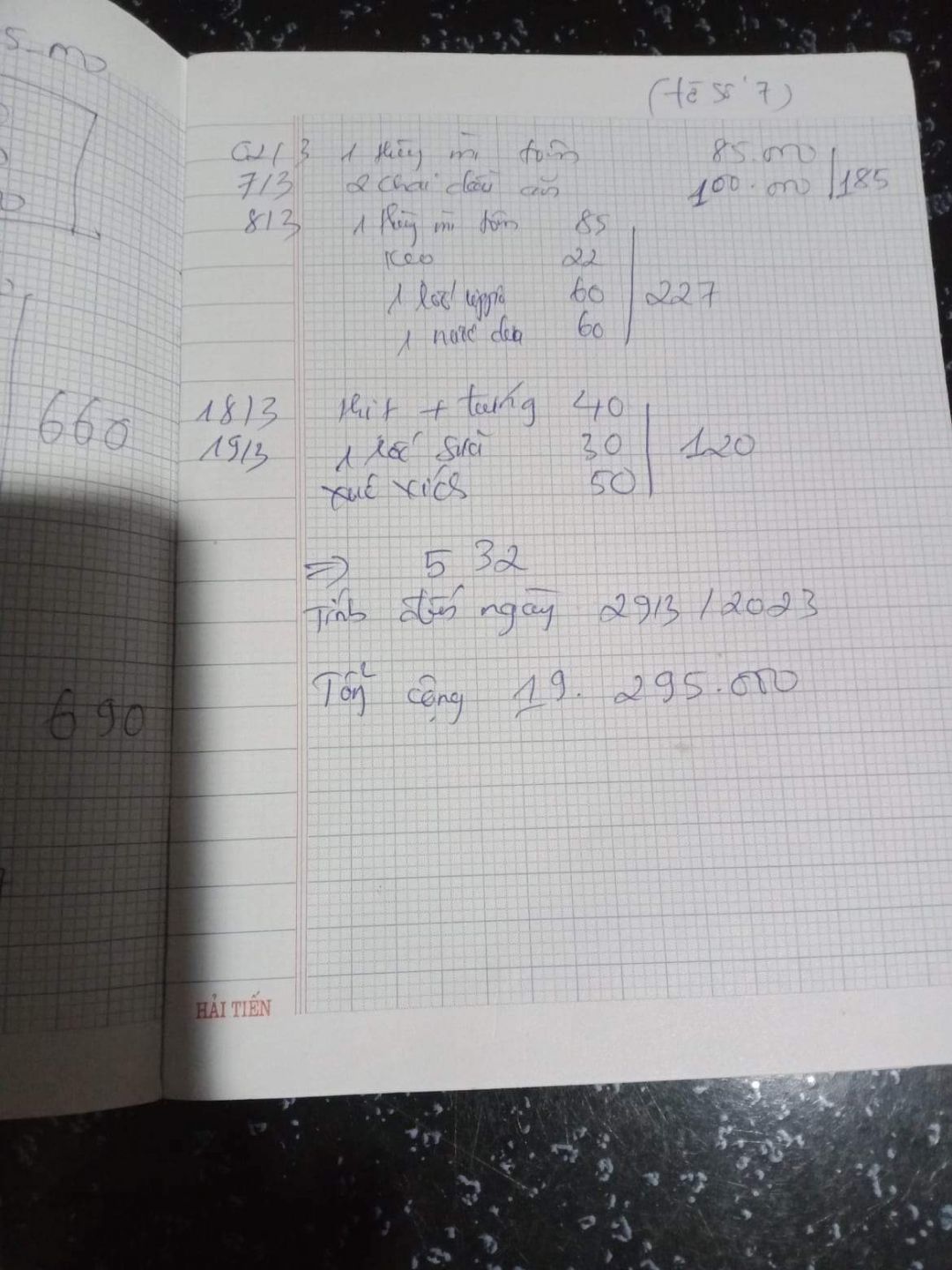 Cả nhà nhìn cuốn sổ nợ nhu yếu phẩm của chị để thấy sự giật gấu vá vai để có lương thực nuôi con.