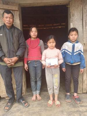 Con chào cả nhà ạ!. Thay mặt gđ 3 cháu mồ côi mẹ con xin cảm ơn c Loan nguyễn và chị Huệ đã cưu mang, giúp đỡ gđ cháu!. Hoàn cảnh này Hoàng Ngân sẽ chịu trách nhiệm chuyển tiền cưu mang hàng tháng cho gđ em như các hoàn cảnh khác ạ!. Con xin nhận nhiệm vụ trung chuyển và báo cáo tình hình của gia đình 3 bé. Nên nếu cả nhà tin tưởng con xin nhận nhiệm vụ này. Kính mong sự giúp đỡ của cả nhà đến hoàn cảnh gđ 3 bố con!. Hiện tại tình hình học tập của 3 bé thì có 2 em sau. 1 em đang học lớp 8, 1 em đang học lớp 5. Còn chị đầu nay lên lớp 10 nhưng đã không được đi học từ hết cấp 1. Sách vở học tập của 2 em được nhà trường tặng đầu năm học mới. Gđ thuộc diện đặc biệt khó khăn trong xã đã rất nhiều năm. Bố k có sức lao động, ngày mẹ còn sống gđ chỉ có 1 cái dường cũ ọp ẹp. Các mạnh thường quân qua kêu gọi ủng hộ mua giúp đỡ cho gđ thêm cái dường mới. Trong nhà k có cái gì cả!. Giờ mẹ mất gđ lại khó khăn, túng thiếu hơn. Mùa đông trên vùng núi Nghệ An rất lạnh, tết lại cận kề, các em cũng muốn có quần áo ấm, cái chăn ấm, muốn được ăn bánh kẹo như các bạn. Vậy kính mong cả nhà quan tâm, giúp đỡ 4 bố con ạ!