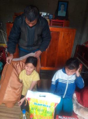 Con xin cập nhật hình ảnh trao cưu mang tháng 1 cho gia đình 3 bé Tân, Nội, Trợ ạ!. Quần áo, chăn tụi con sẻ trao cùng quà tết luôn ạ!