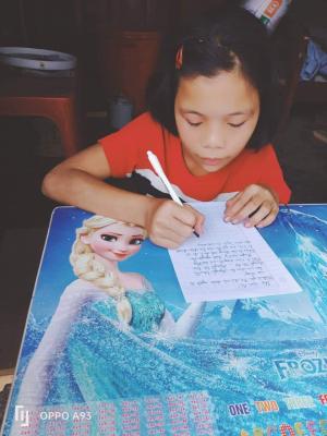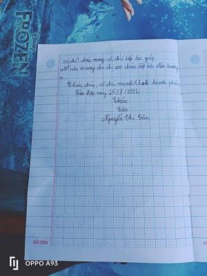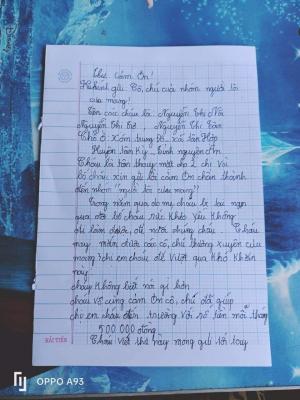Con chào cả nhà ạ!. Đây là bức của bé Tân viết thư cảm ơn các cô chú đã giúp đỡ cưu mang 3 bé ạ!. Con xin phép gửi tấm lòng biết ơn của 3 bé tới diễn đàn. Con cảm ơn cả nhà đã quan tâm giúp đỡ ba bé ạ!. Mong cả nhà tiếp tục giúp đỡ ba bé ạ!
