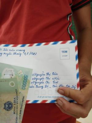 Con đã nhận được tiền cưu mang của ba bé mồ côi ạ. Thay mặt 3 bé, con cảm ơn CLB Hy Vọng và gia đình Nhimcon, chị Loan Nguyễn rất nhiều ạ