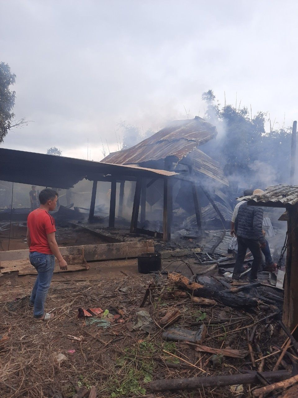 Trưa nay lúc 13h ngày 3/1/2021 do bất cẩn lúc nấu ăn,  bố mẹ anh đã để ngọn lửa bùng cháy, thiêu rụi hoàn toàn ngôi nhà, cũng may không thiệt hại về người, nhưng cả gia đình 14 người cả trẻ con và người già lâm vào cảnh không nhà cửa giữa mùa đông giá buốt. Anh Tâm đại diện cho chính quyền địa phương đứng ra xin trợ giúp từ cộng đồng với mong muốn xây mới lại ngôi nhà mới cho gia đình anh Cáng để các con và ông bà có chỗ ở đón tết.