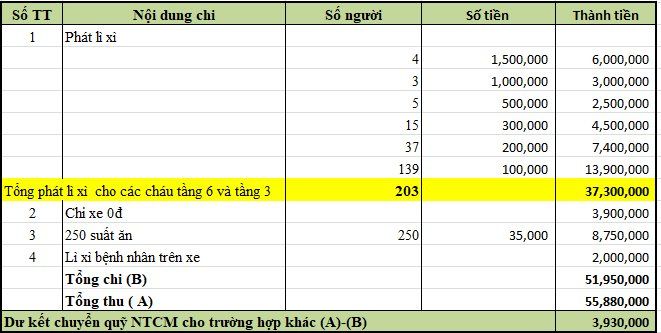 2. Lì xì 20 bệnh nhân nghèo trên chuyến xe, mỗi bệnh nhân 200k: Trị giá 4,000,000 VND
