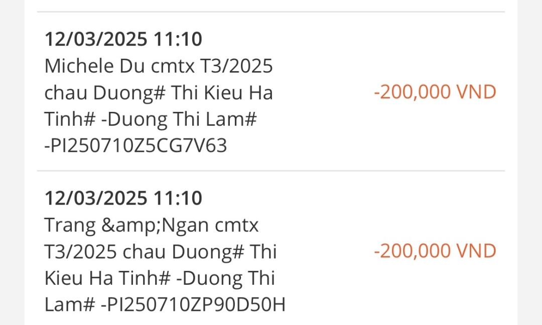 Vịt đã chuyển CMTX T3/2025 từ Trang & ngân 200k và Michele Du 200k