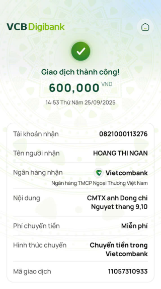 Anh Hải gởi 600.000đ CMTX hai tháng 9,10/2025.