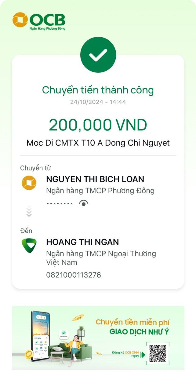@loanngyen1202@Hoàng Ngân : Khoản tiền 200,000₫ từ Mộc Di gửi các cháu đã nhận được chưa ?