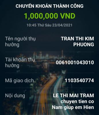 Lathuvang đã trung chuyển TK Thocon 1,000,000đ của Michele_du và GĐ giúp chị Hiền.