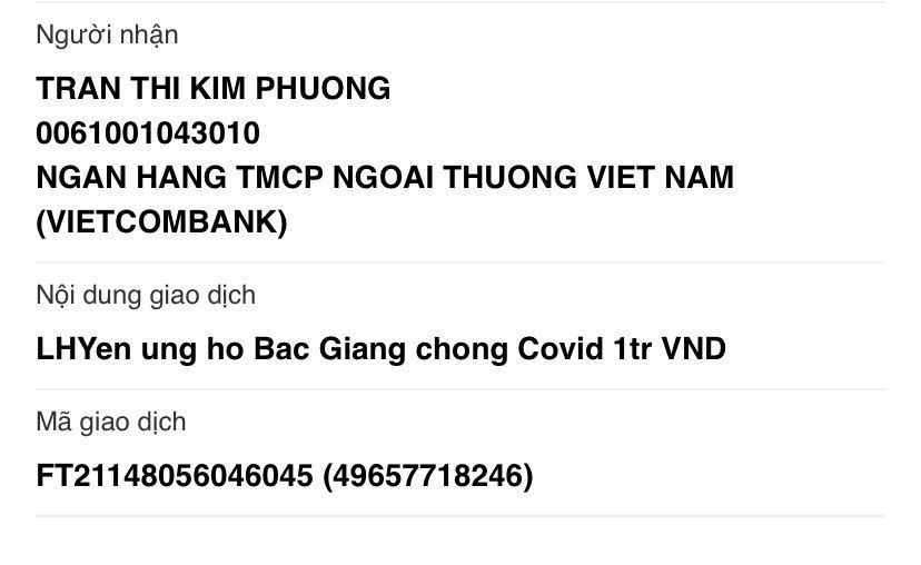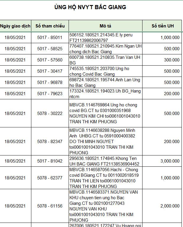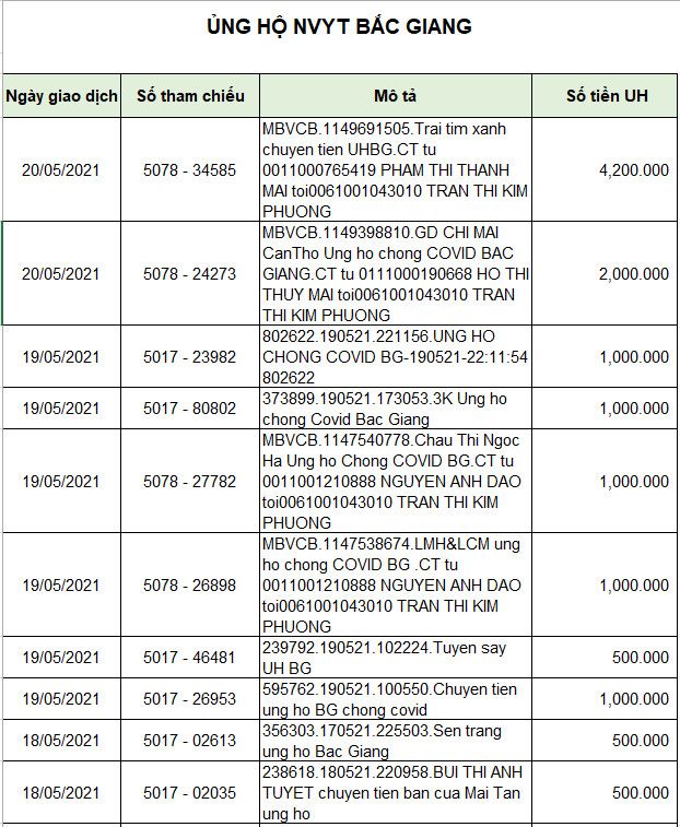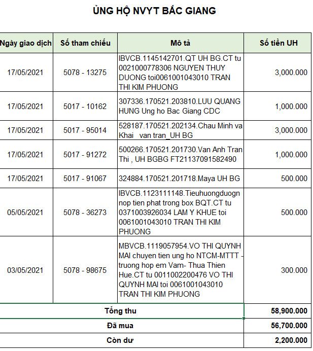 Em đợi sao kê của thủ quỹ diễn đàn , sẽ đề xuất các khoản tiếp tục hỗ trợ cho Băc Giang nếu ngân sách cho phép ạ