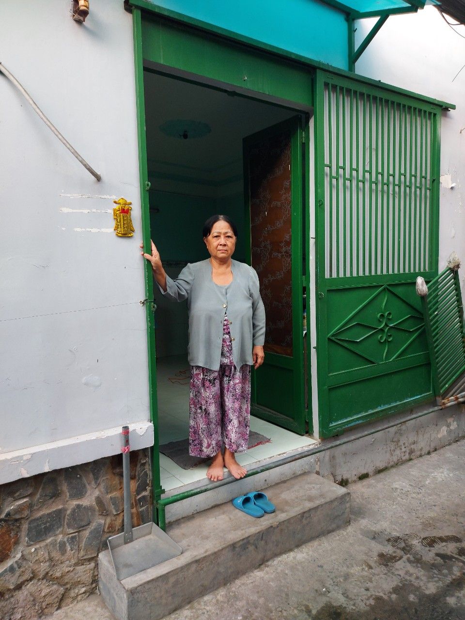 Khu nhà trọ nơi cô đang sinh sống ,hai ngày hôm trước đã  bị cách ly, phòng toả lối ra vào ,giờ cô chỉ có thể ở nhà, không còn đi lụm về chai được nữa .