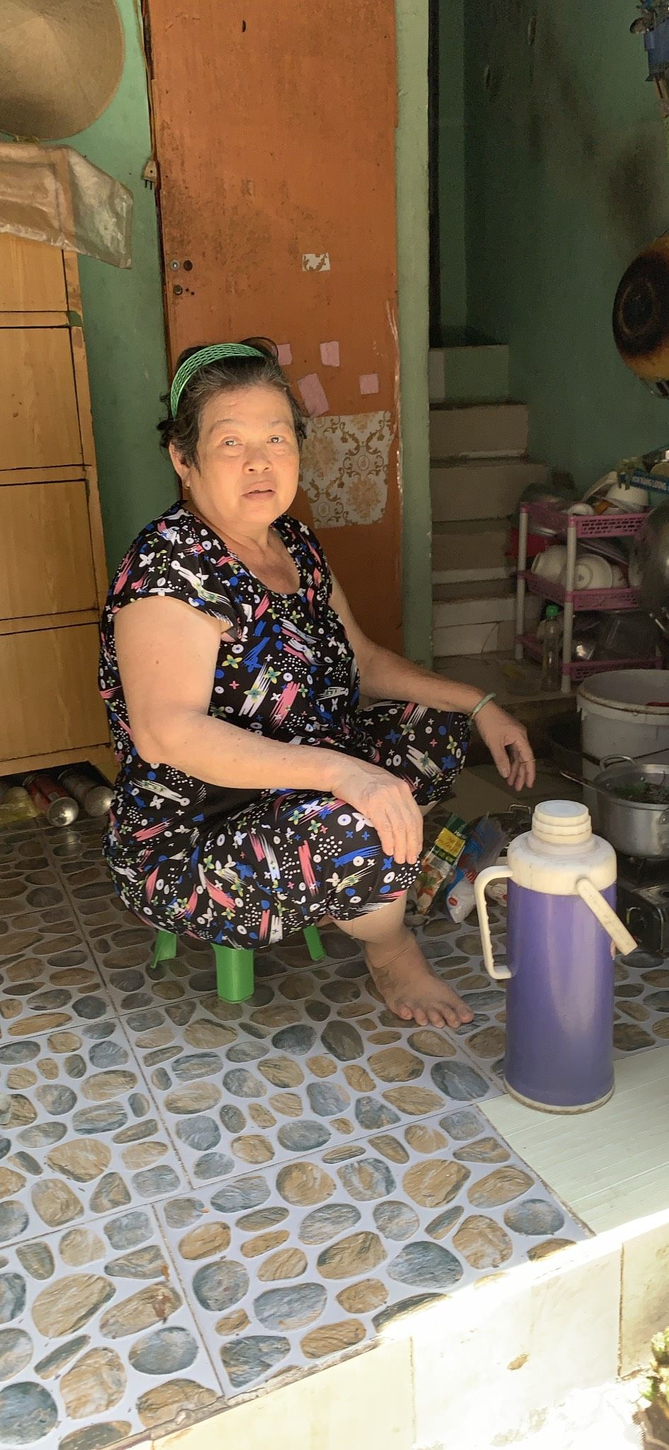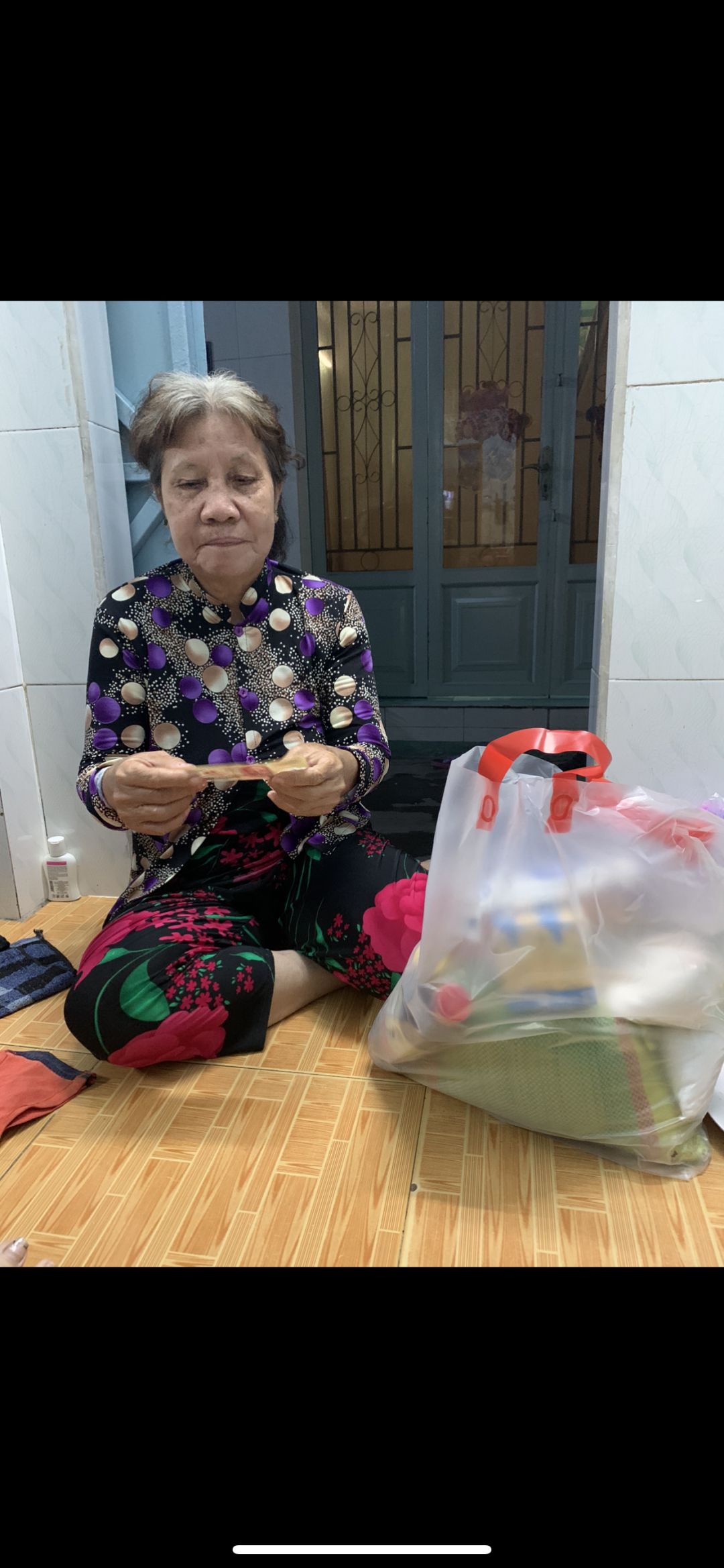 Dì Quỳ sống cùng hai người con gái và ba đứa cháu ngoại . Hai người con gái Dì đi phụ bán quần áo ở chợ chiều ( chợ nhóm ) nhưng mà do ảnh hưởng dịch nên người ta không có mướn đi làm . Hiện tại gia đình không có thu nhập .