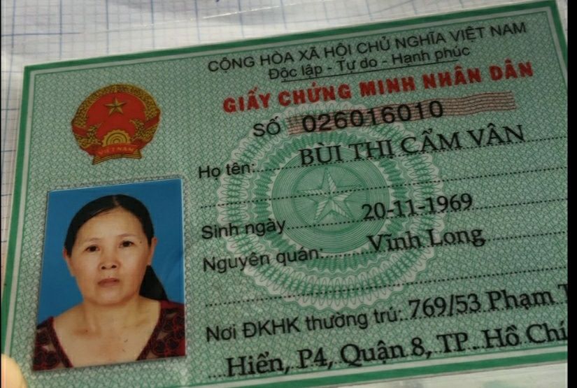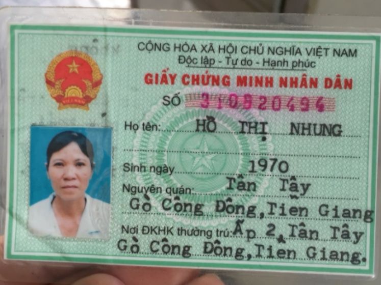 Giấy chứng minh nhân dân của chị vợ đã bị mất đang làm lại chỉ có giấy chứng minh của chồng hình ảnh của người vợ.