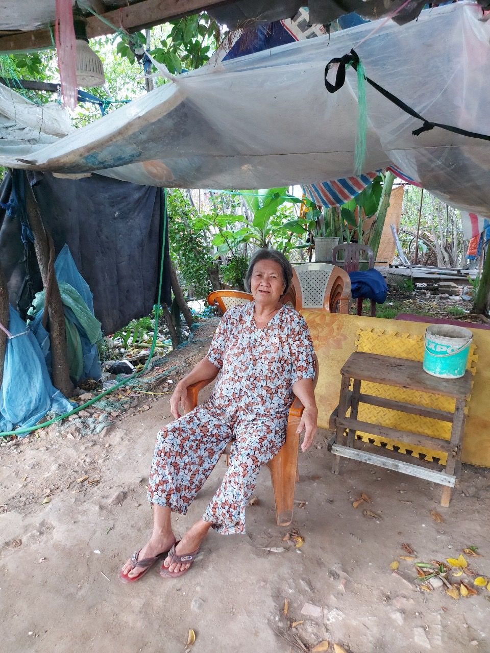 Hiện tại Dì Lệ và người cháu trai ở đậu trên đất người ta. Địa chỉ này Tuyền xin từ chị hàng xóm ở gần đó Ấp 5 E 11 xã bình Hưng Bình Chánh.