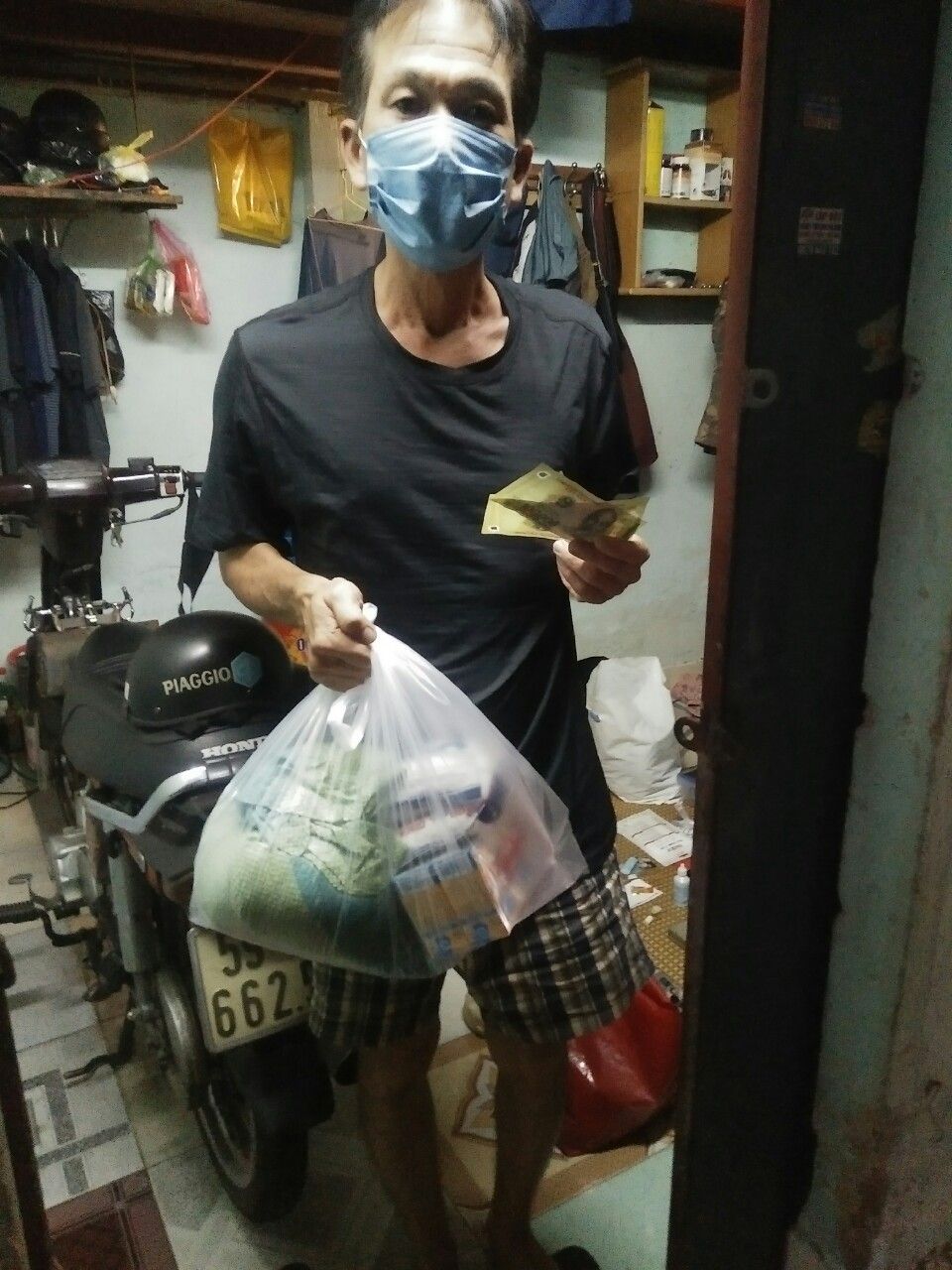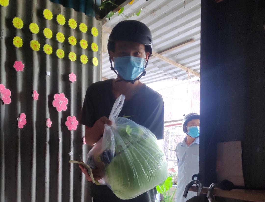 Hoàn cảnh gia đình: anh và vợ đều bị khuyết tật, có 1 người con cũng bị khuyêt tật và thiểu năng, anh mất thu nhập do dịch covid, thuộc diện hộ nghèo của khu phố.
