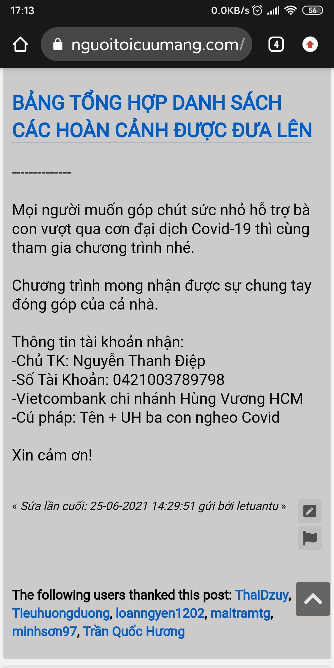 Nhờ cô @lathuvang chuyển thêm 20,000,000đ để letuantu mua thêm thực phẩm hỗ trợ các bếp.