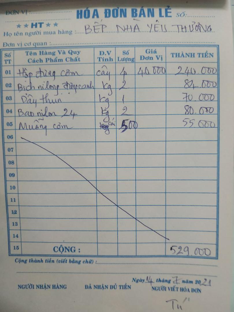 Letuantu đã chi mua thực phẩm, gia vị cung cấp cho các bếp: