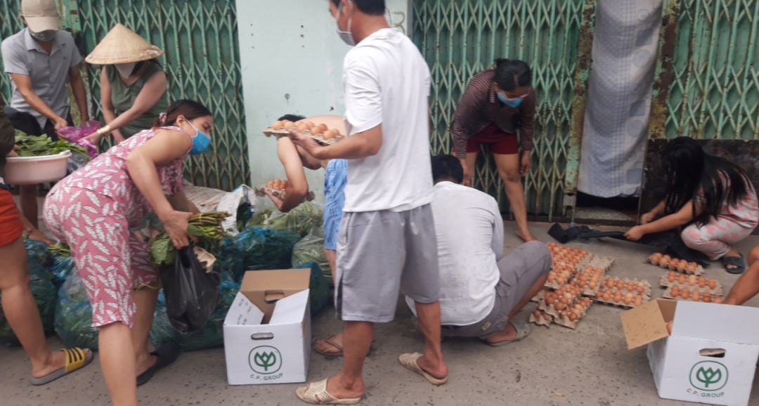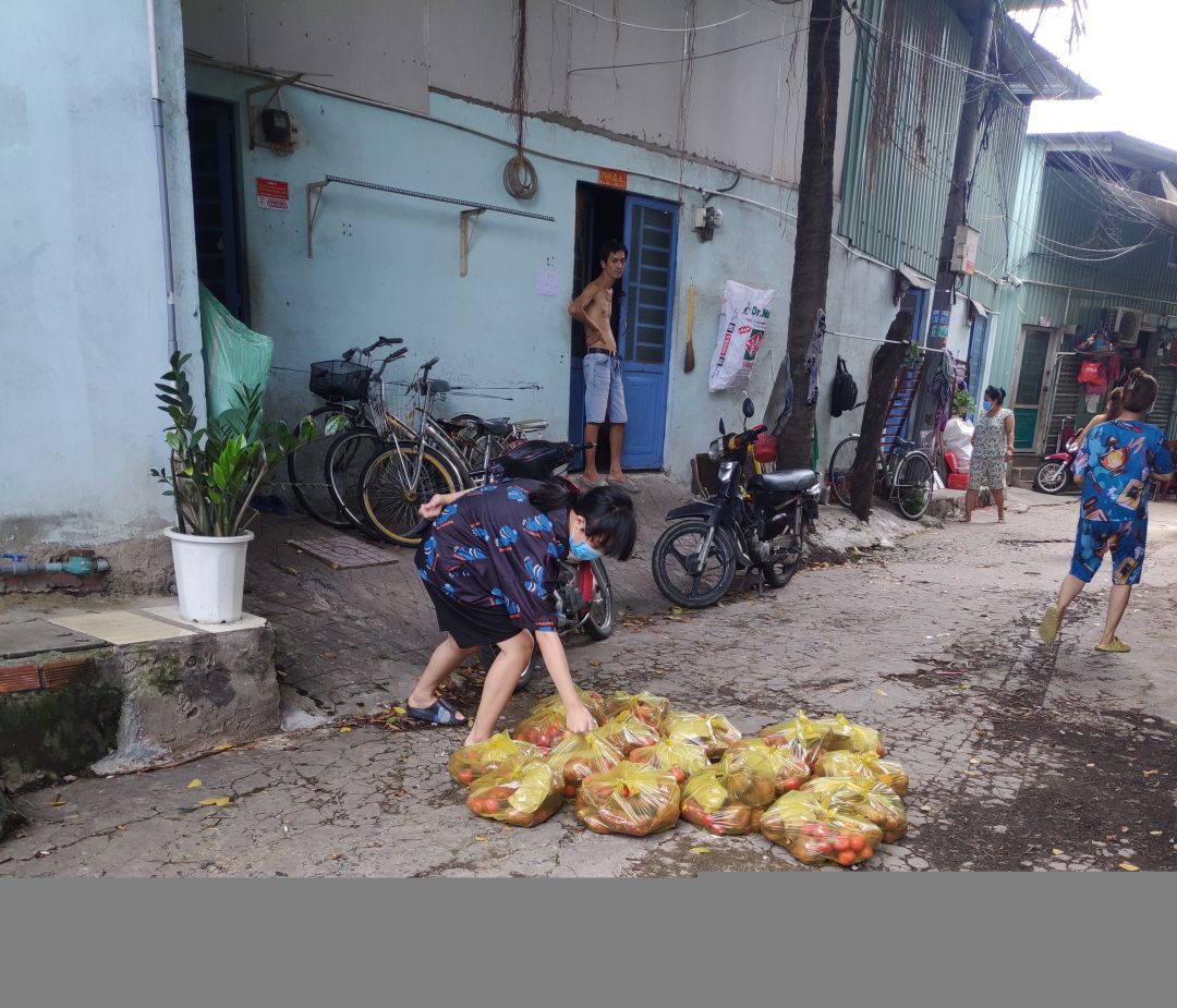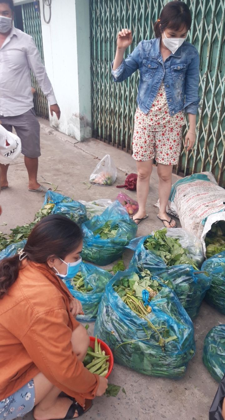 Chiều nay, quán cơm 2000đ đã chuyển rau củ đến khu trọ tại D4/10, tổ 14, ấp 4, xã Vĩnh Lộc B, huyện Bình Chánh: