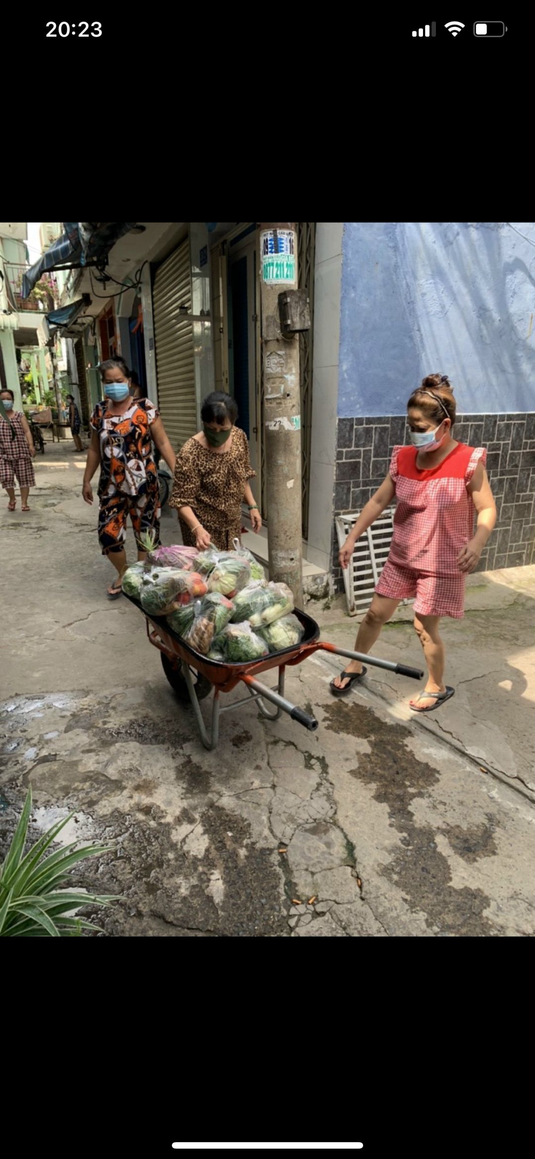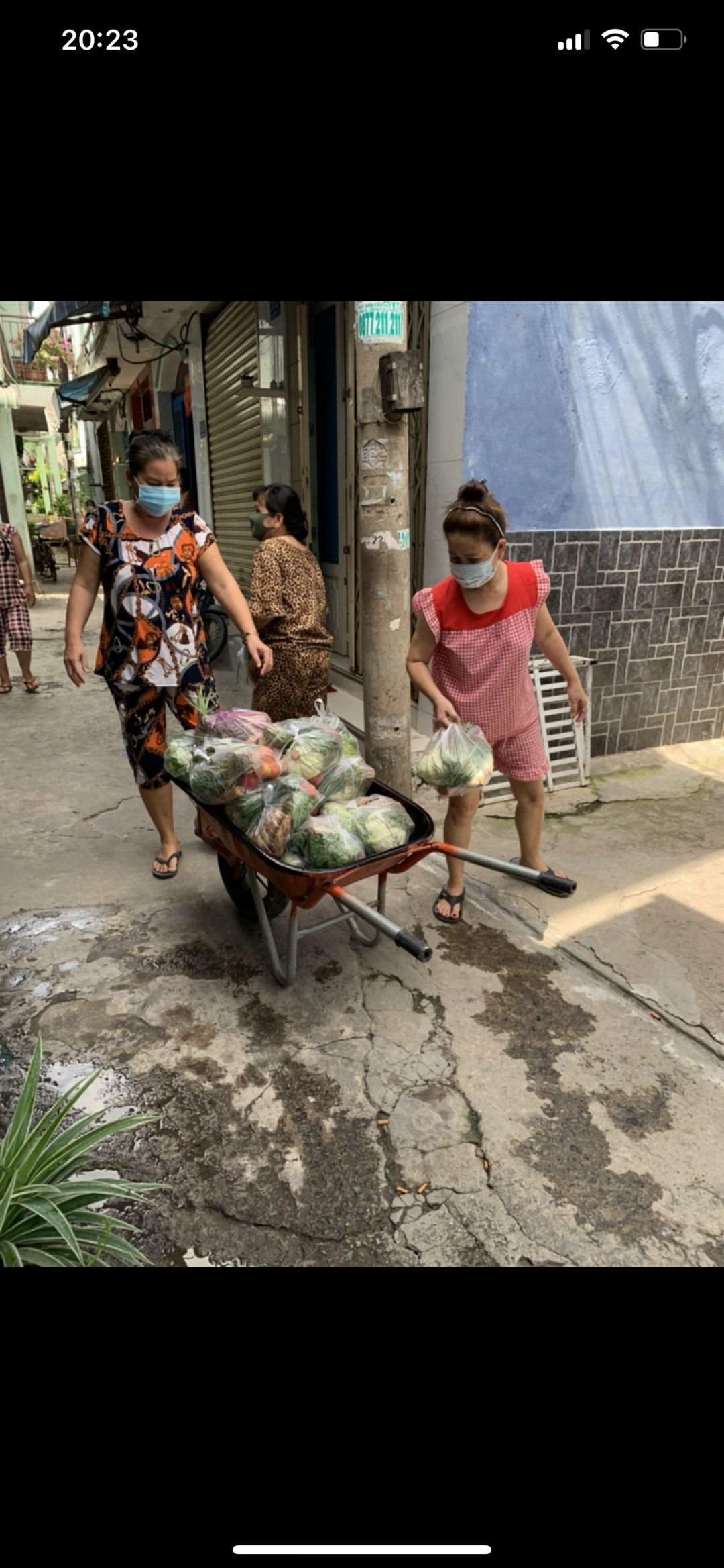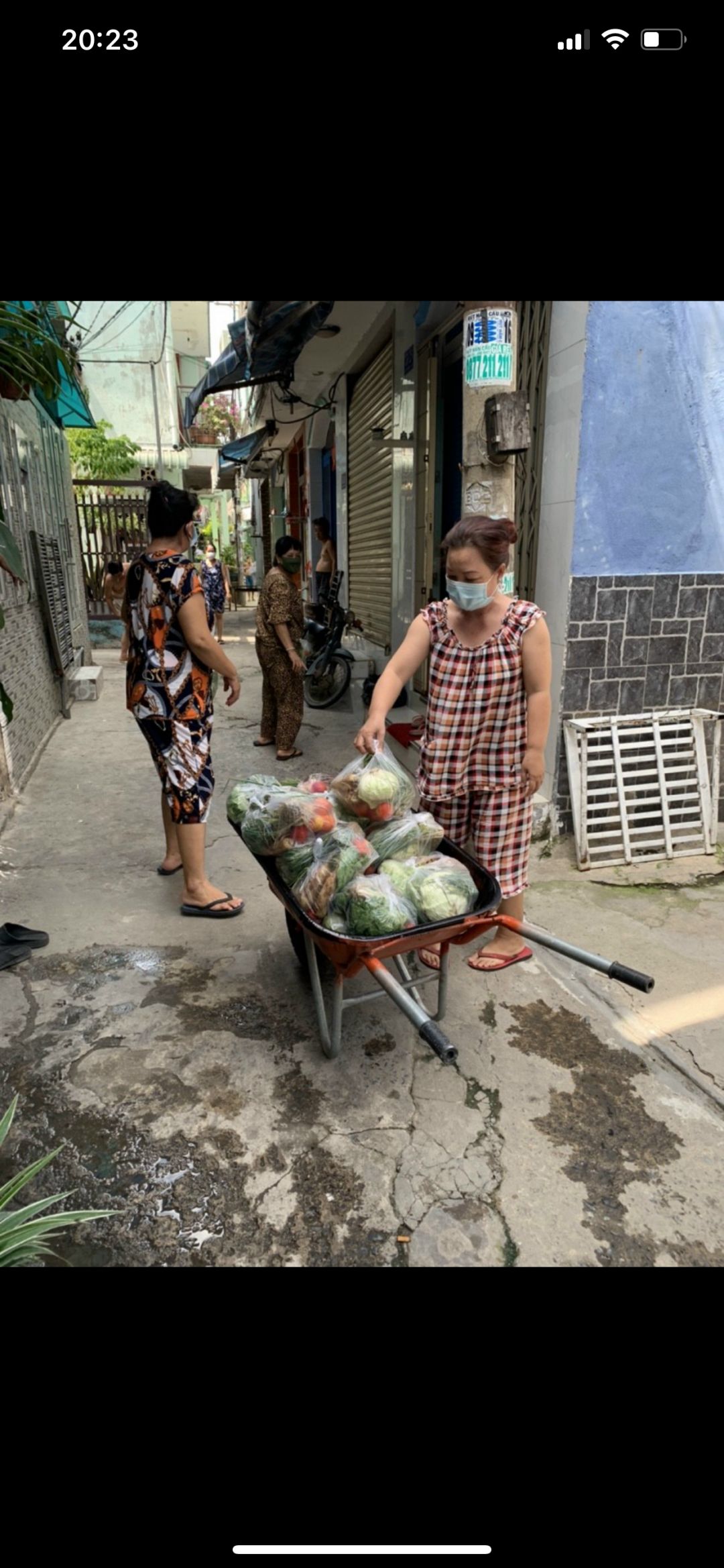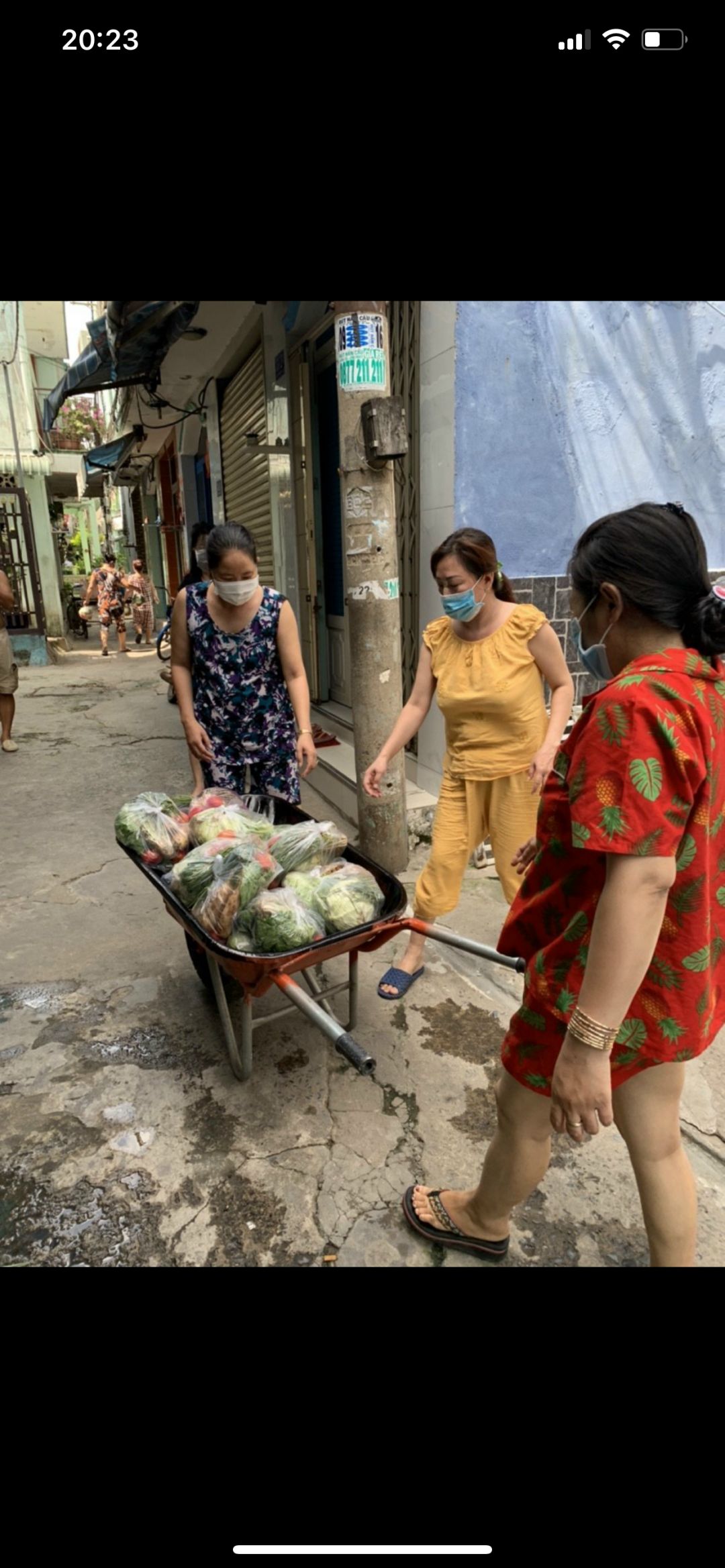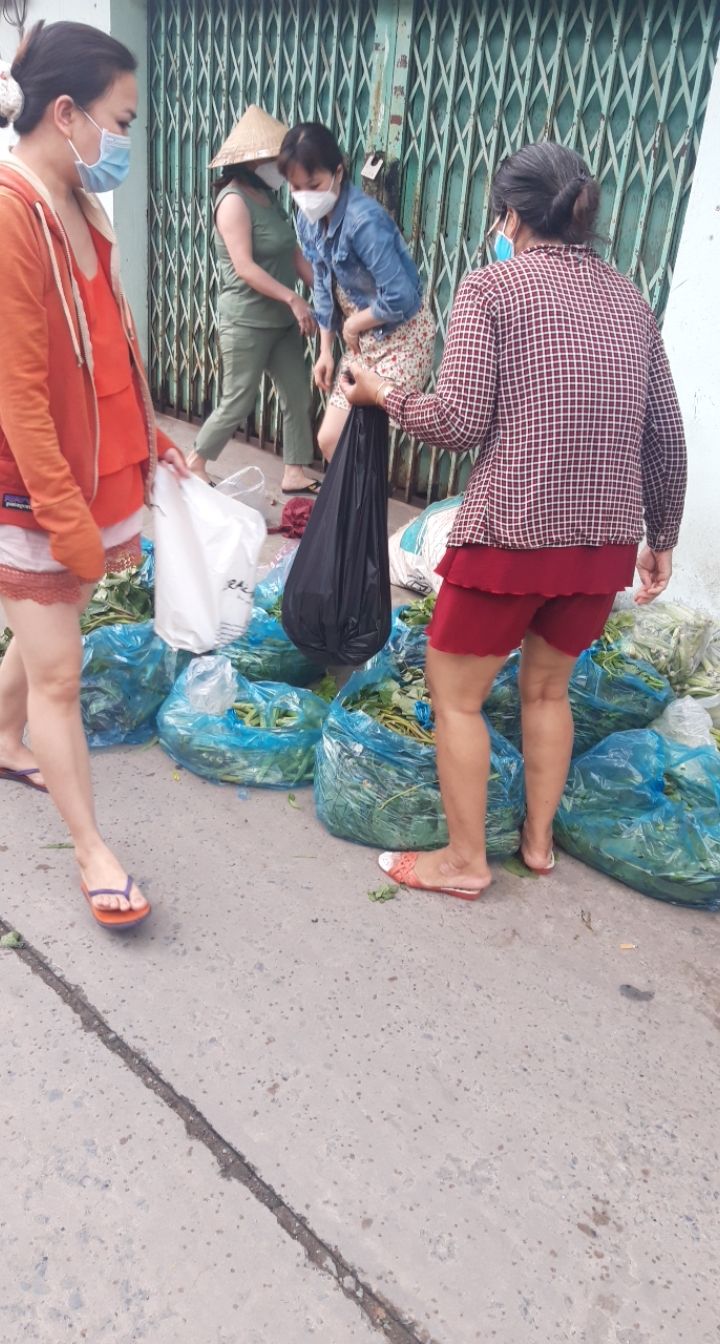 Tuyền gửi hình ảnh bà con nhận rau củ khu vực cách li hẻm 350 Lưu Hữu Phước phường 15 quận 8.