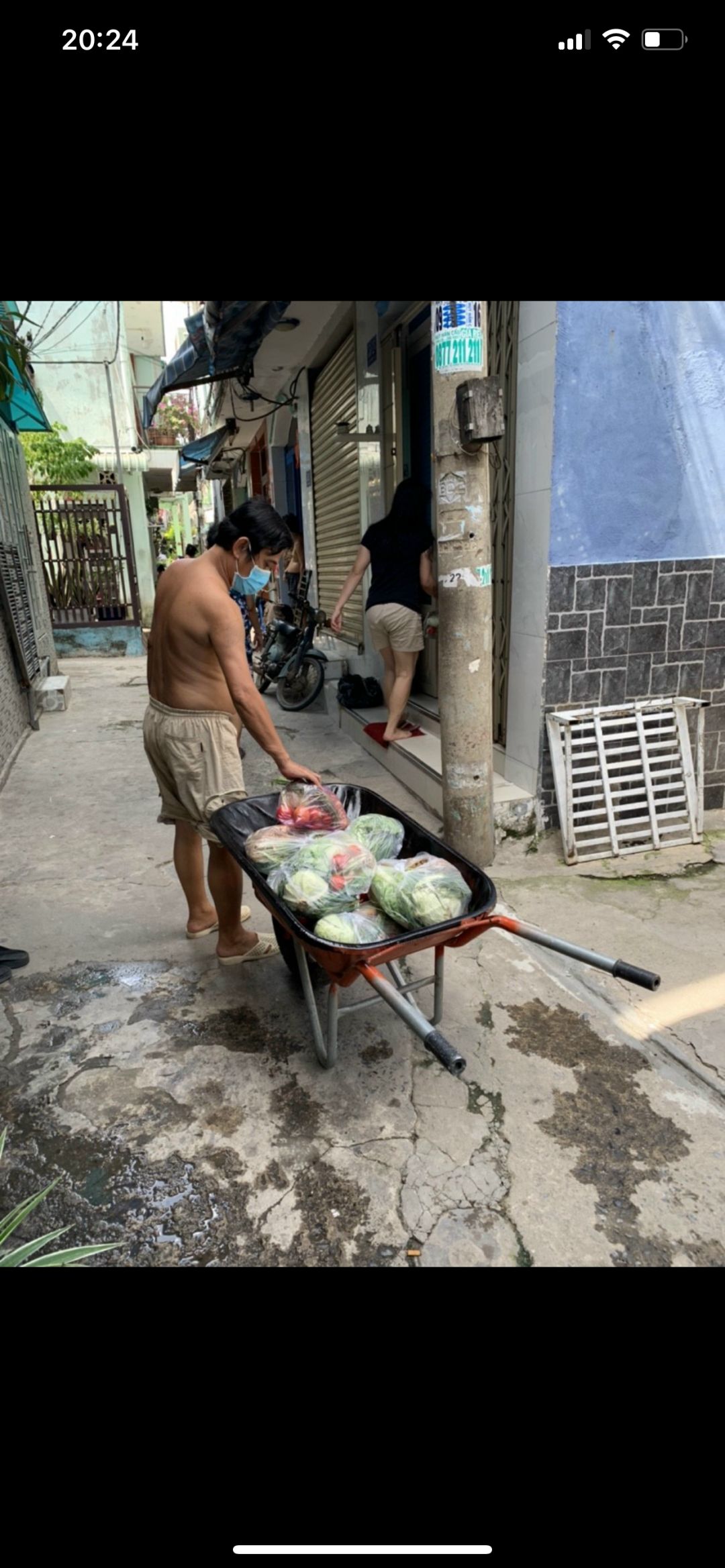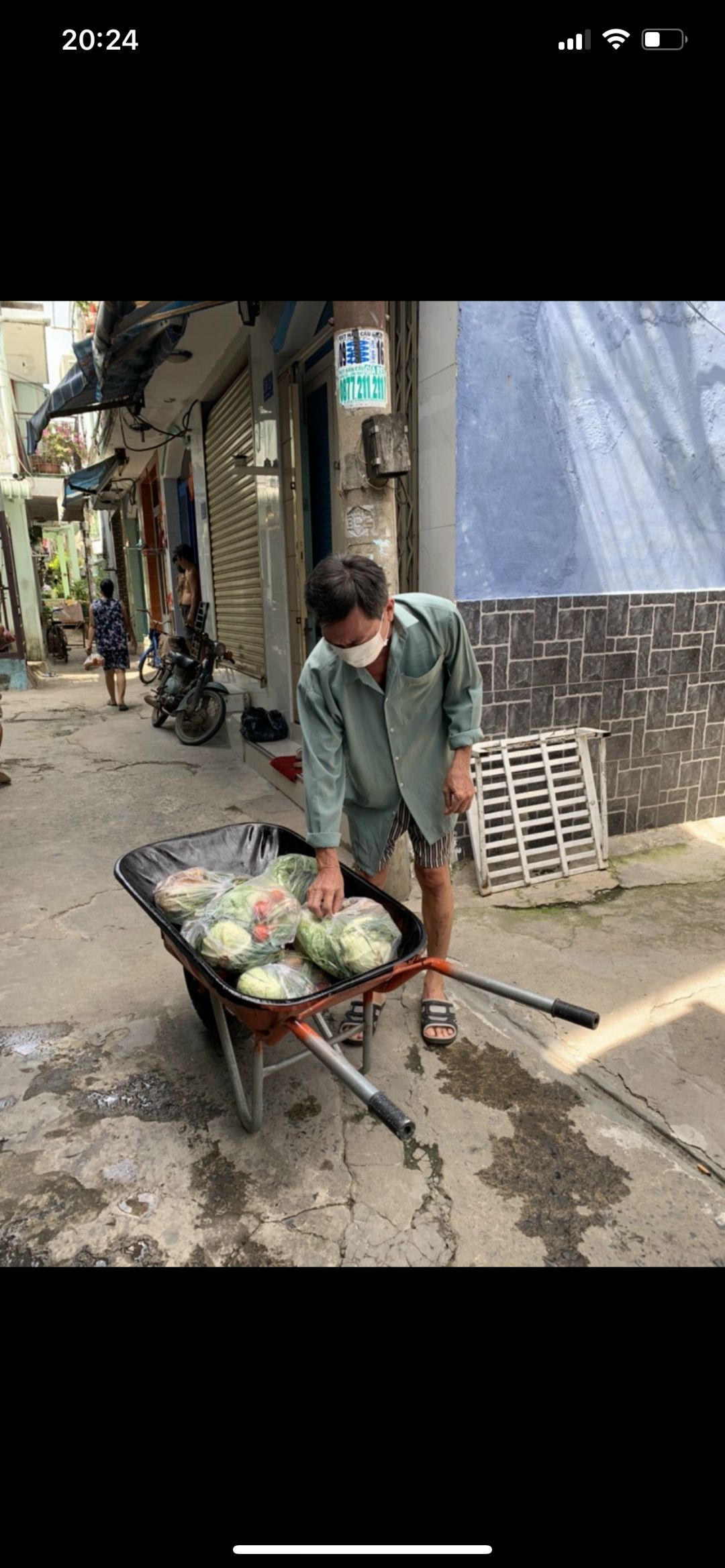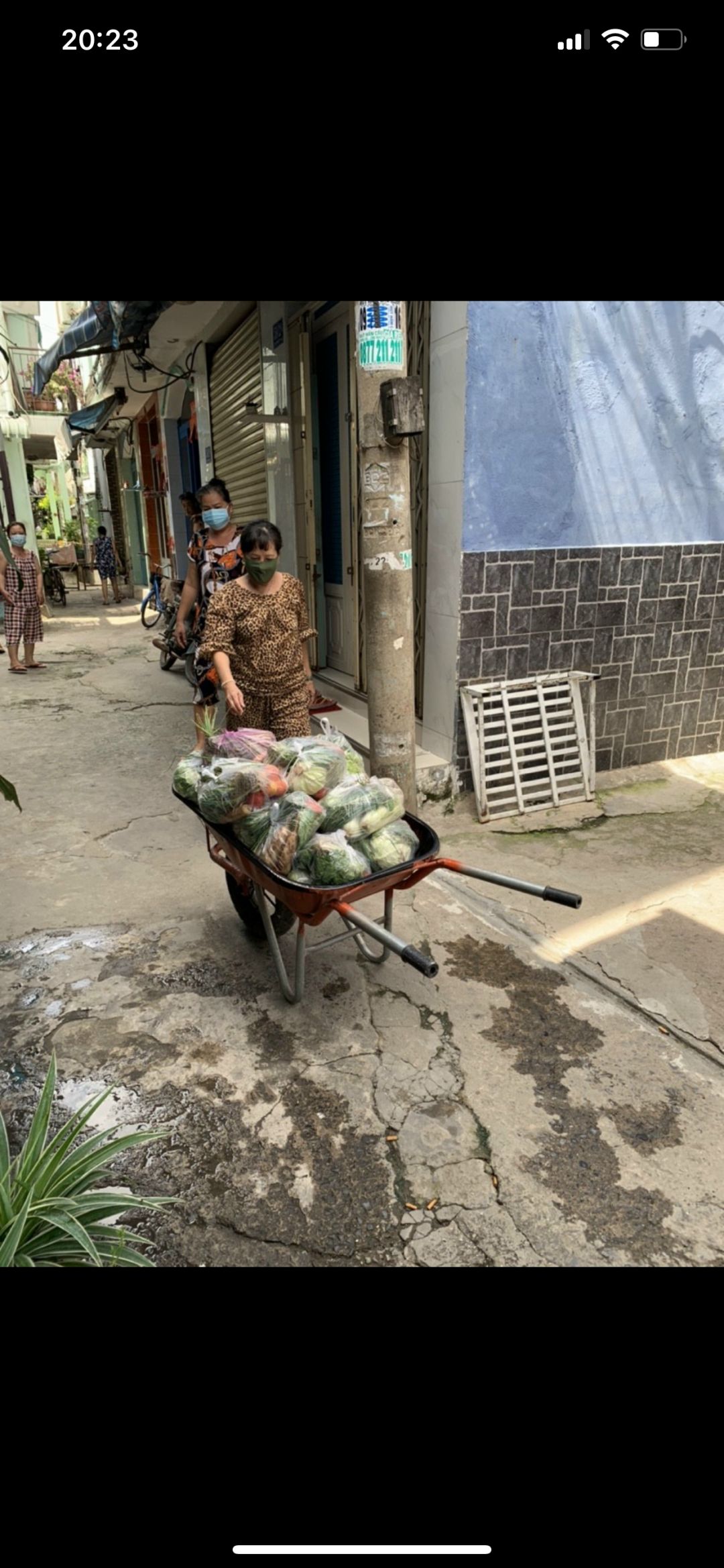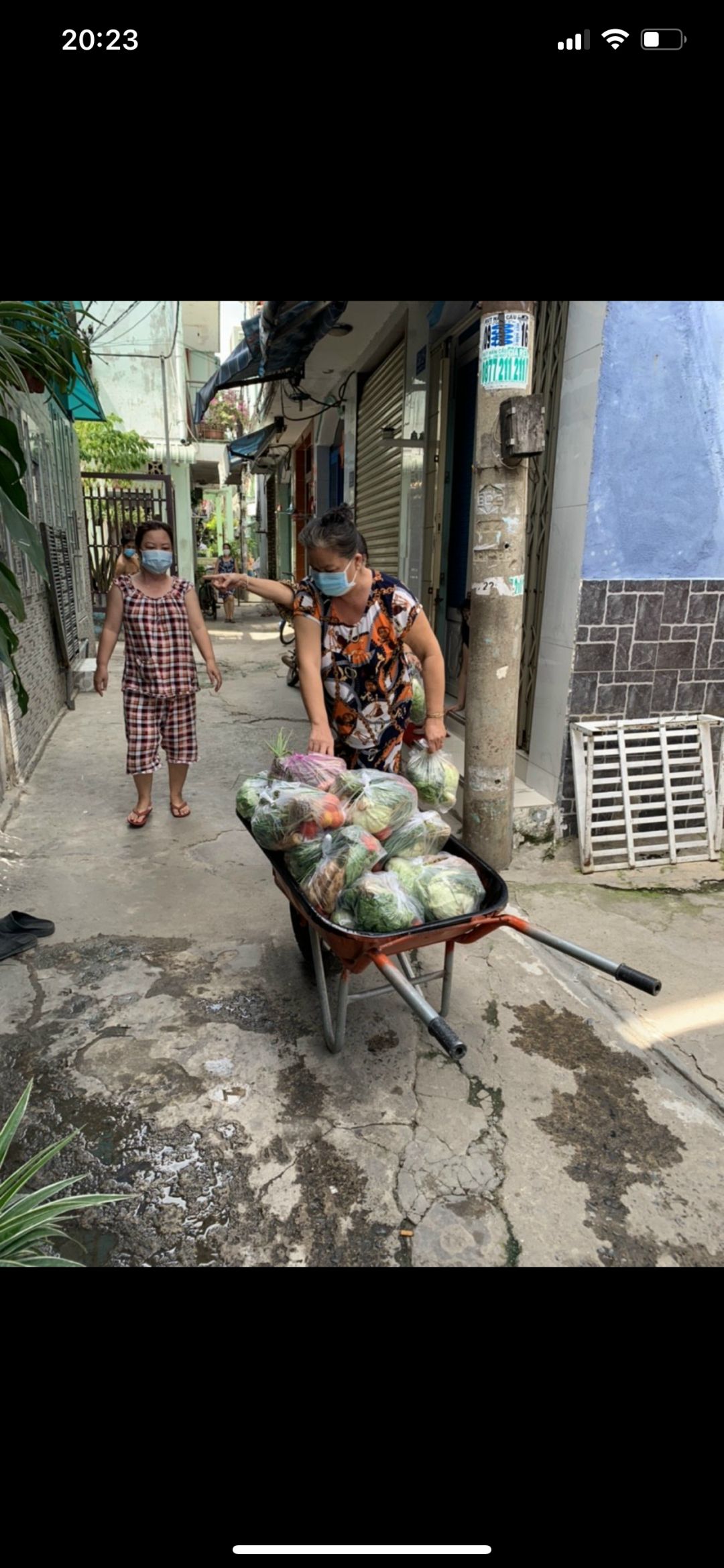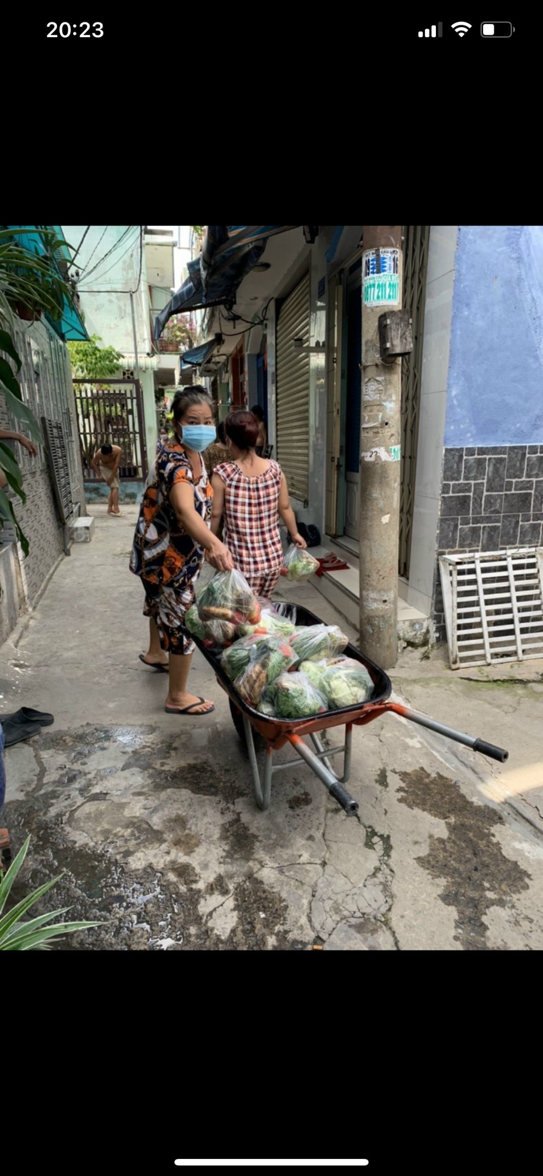 Tuyền gửi hình ảnh bà con nhận rau củ khu vực cách li hẻm 350 Lưu Hữu Phước phường 15 quận 8.