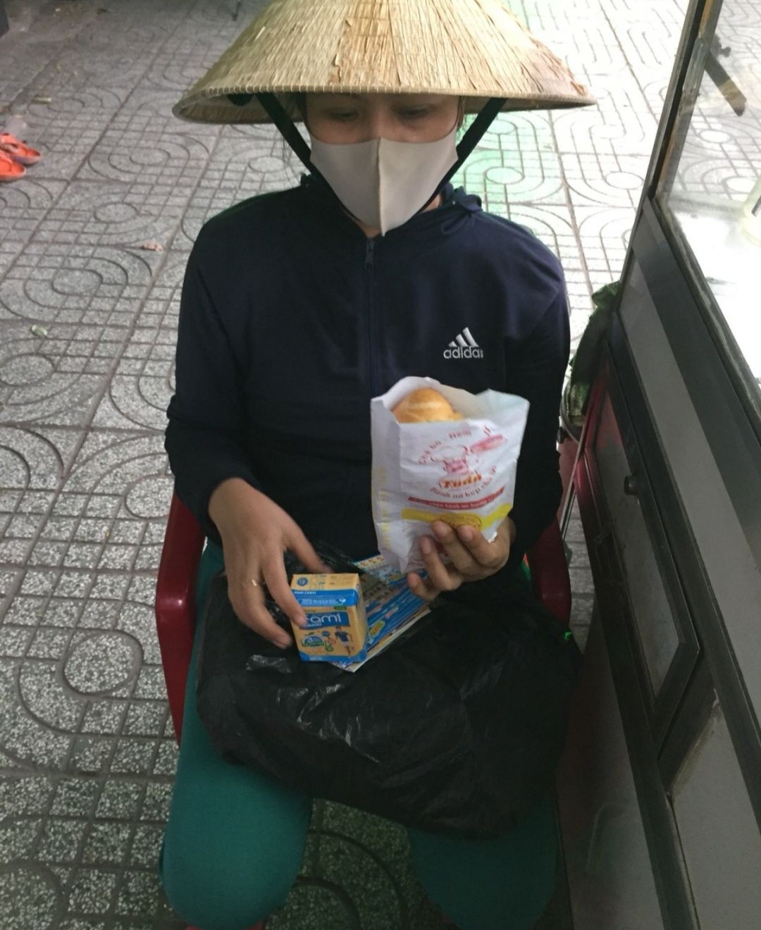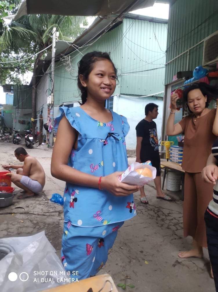 Một buổi chiều phát bánh mì đến tai bà con lao động làm nghề ve chai.và một số người bán vé số ở xóm trọ của Mai Trâm.