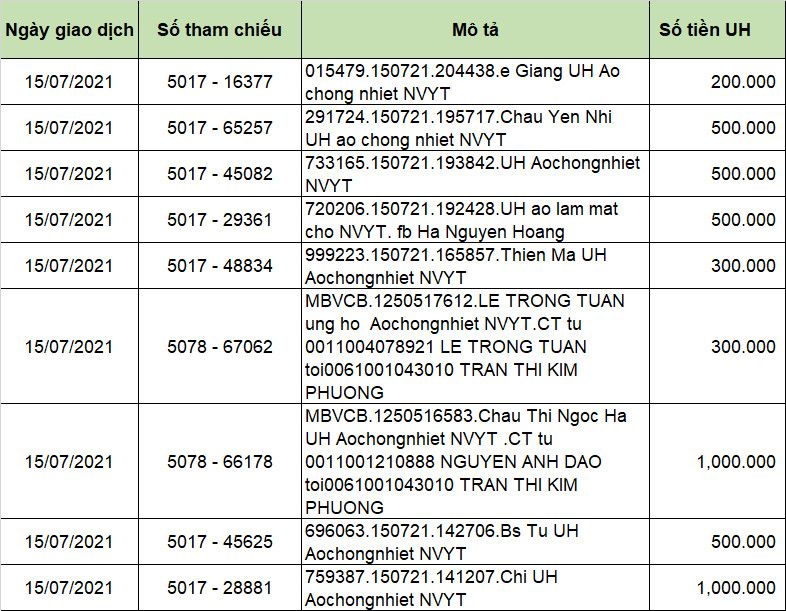 Cảm ơn Thái Duy đã lên bài kêu gọi trên Face booook . Con số kêu gọi theo thống kê trên tường FB của Maitan và Thai Duy đã được 12.400.000 ( 14.45 ngày 15/7/21)