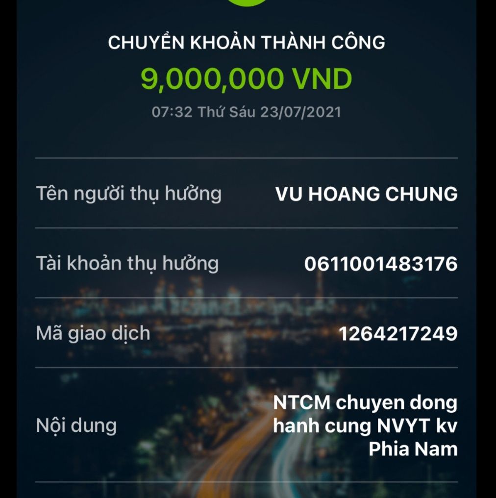 Thocon đã chuyển tiền tới anh Vũ Hoàng Chung rồi các bạn nhé.