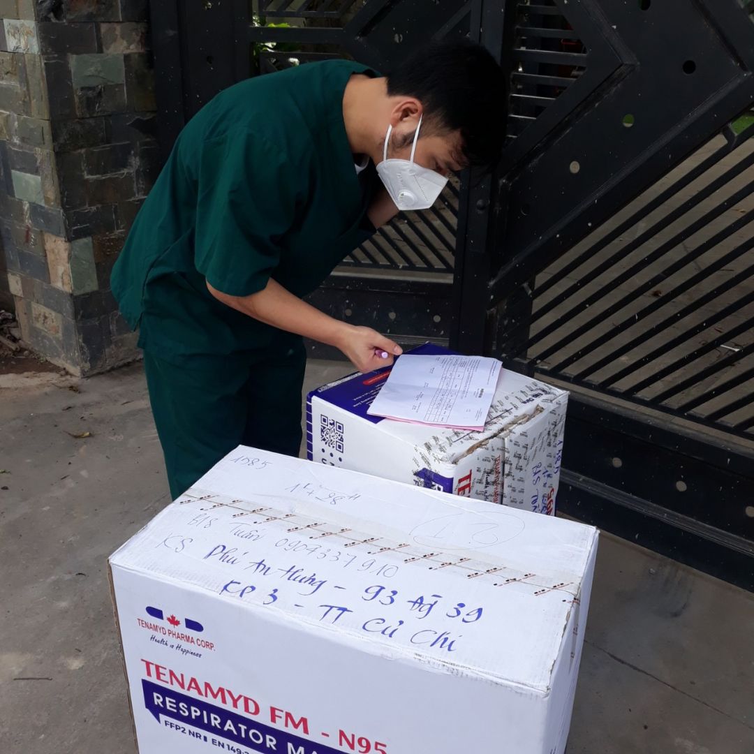 và sự hỗ trợ của Bác sỹ An Yên - lô hàng khẩu trang HDX - NIOSH N95 gồm 1.136 chiếc đã được đưa về đến Hà Nội kịp thời gửi cho tiền tuyến
