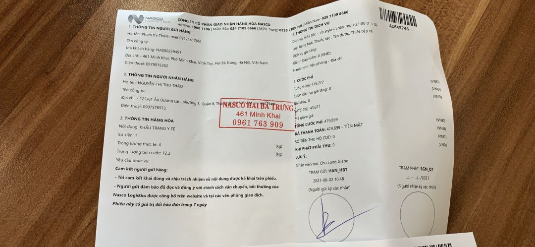 Em xin gửi biên lai đi HCM và hình ảnh viện Nhi nhận hàng