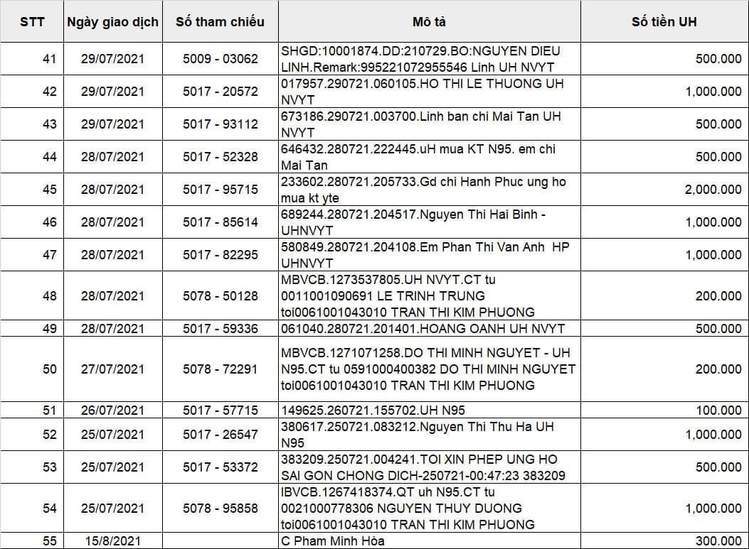 Sau 3 ngày kêu gọi, số tiền chuyển quỹ NTCM cho chương trình mua đồ Bảo hộ cho NVYT Bệnh viện Dã chiến số 6 Thủ đức đã thu được 36 triệu theo sao kê đính kèm.