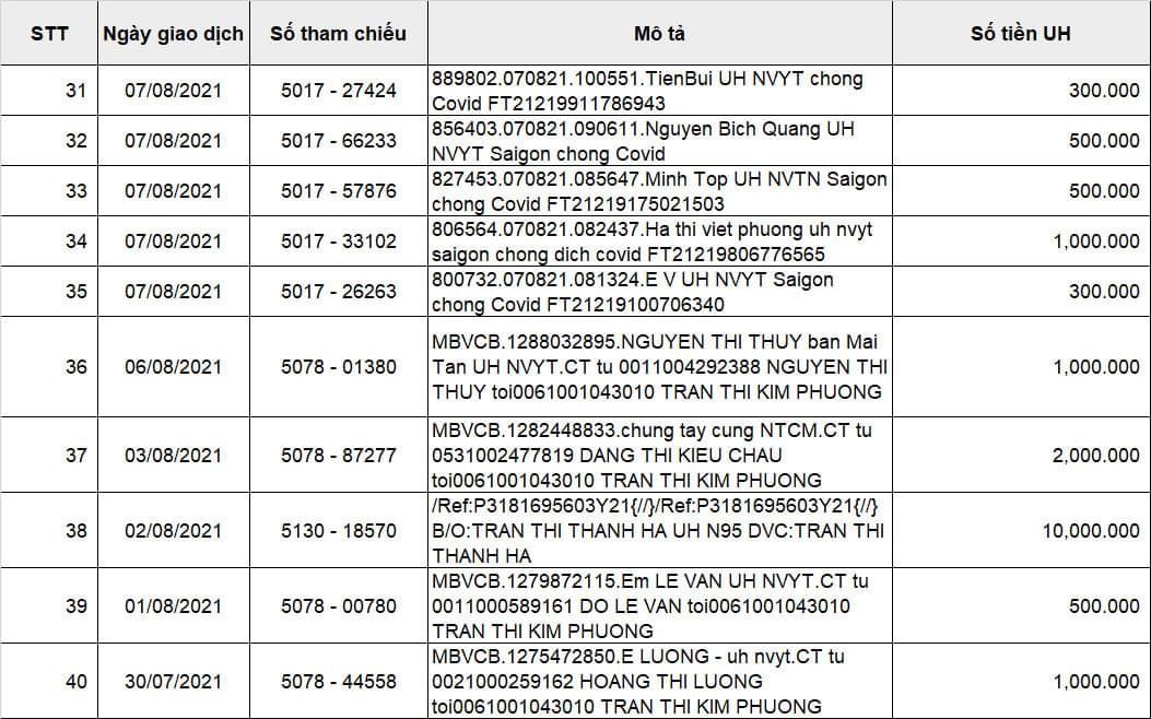 Sau 3 ngày kêu gọi, số tiền chuyển quỹ NTCM cho chương trình mua đồ Bảo hộ cho NVYT Bệnh viện Dã chiến số 6 Thủ đức đã thu được 36 triệu theo sao kê đính kèm.