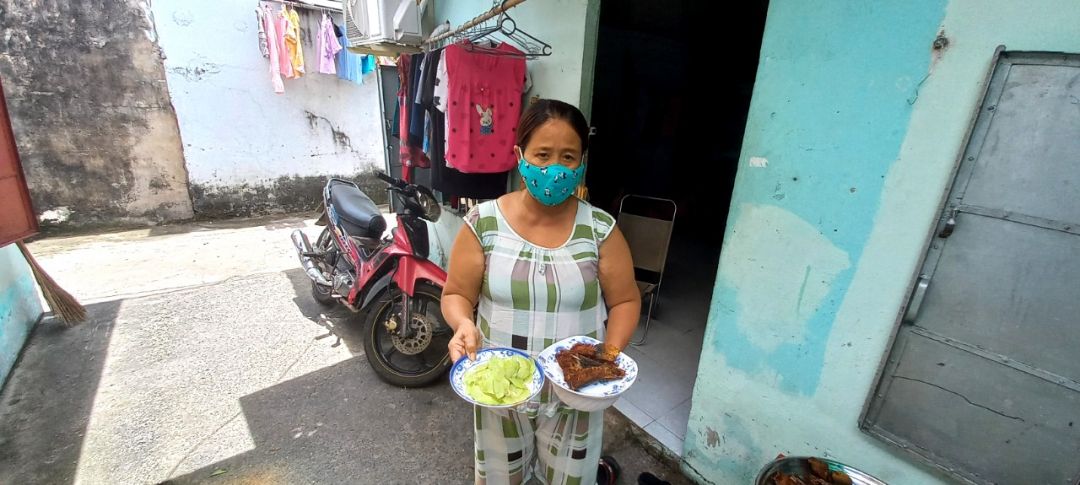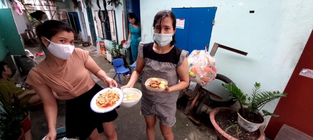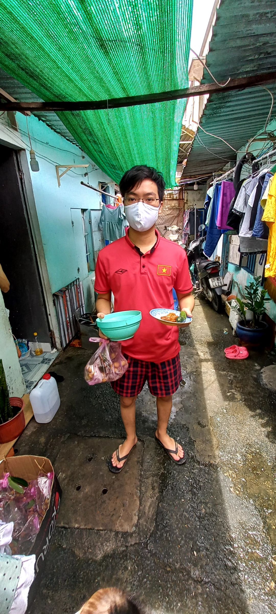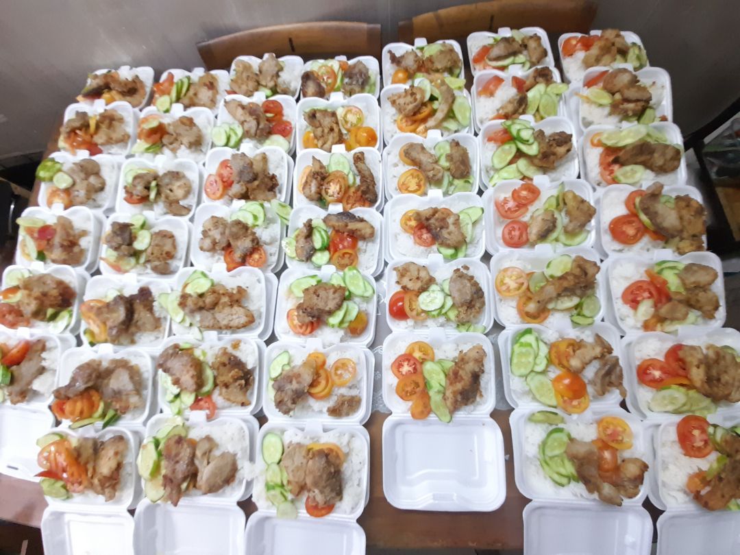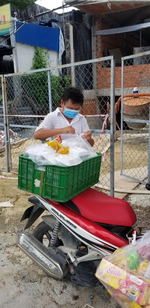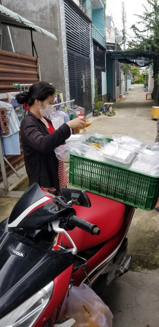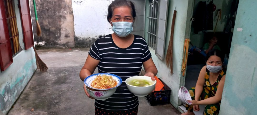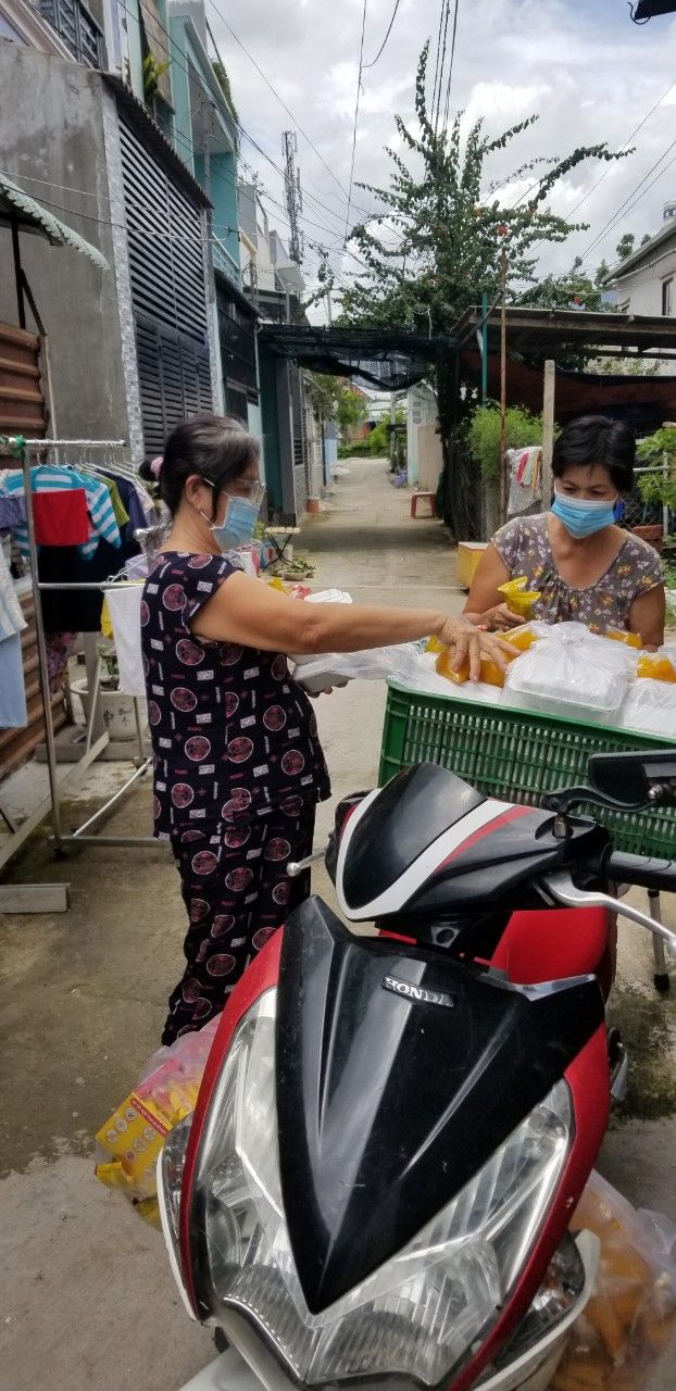 Sáng nấu 240 phần cơm chả cá chiên sốt cà chua và hành tây; bắp cải xào; canh bí đỏ+ sườn que. Nay thêm tráng miệng là ổi hoặc nhãn hoặc bánh solite cho các hộ cách ly và khó khăn