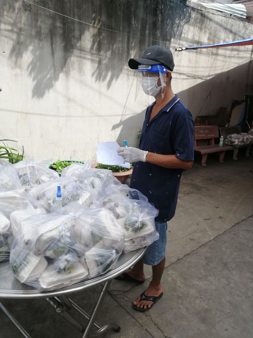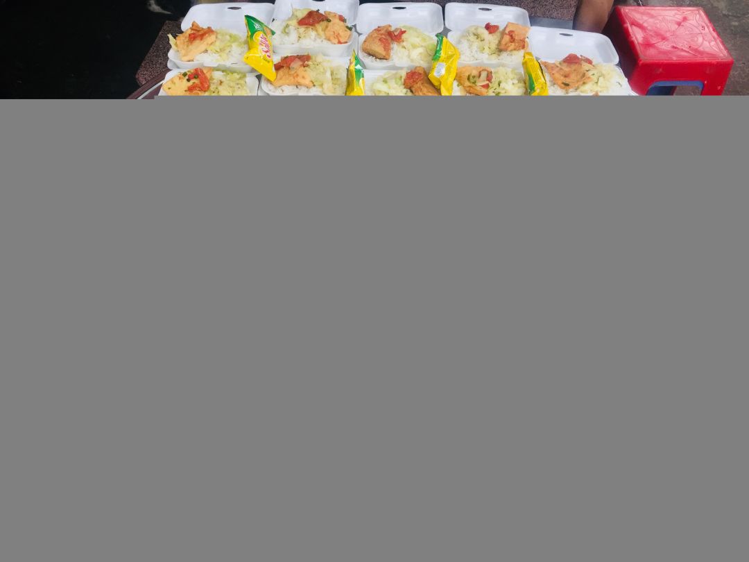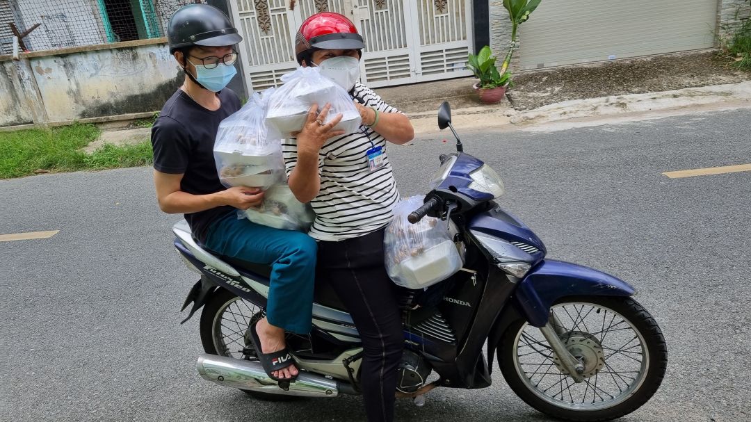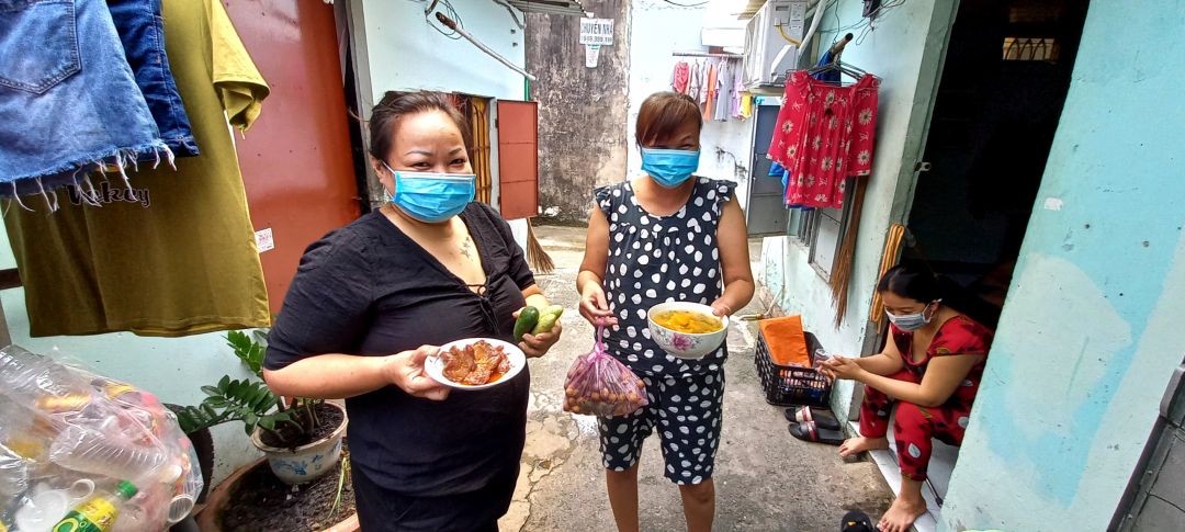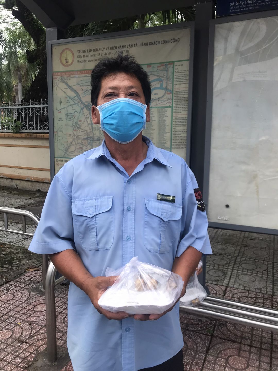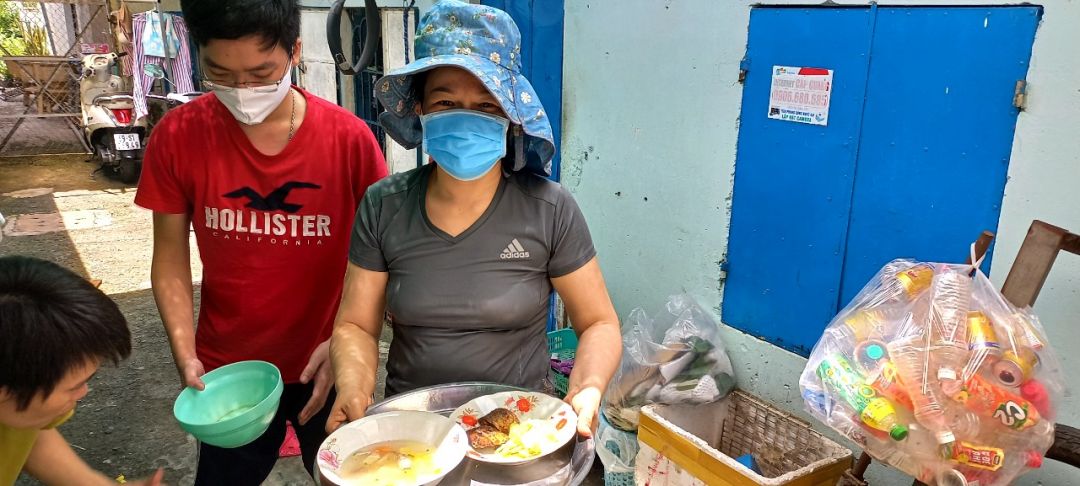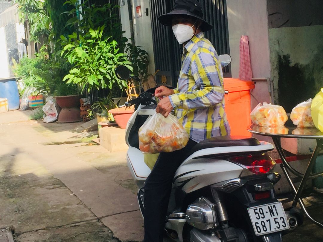 Sáng nấu 240 phần cơm chả cá chiên sốt cà chua và hành tây; bắp cải xào; canh bí đỏ+ sườn que. Nay thêm tráng miệng là ổi hoặc nhãn hoặc bánh solite cho các hộ cách ly và khó khăn