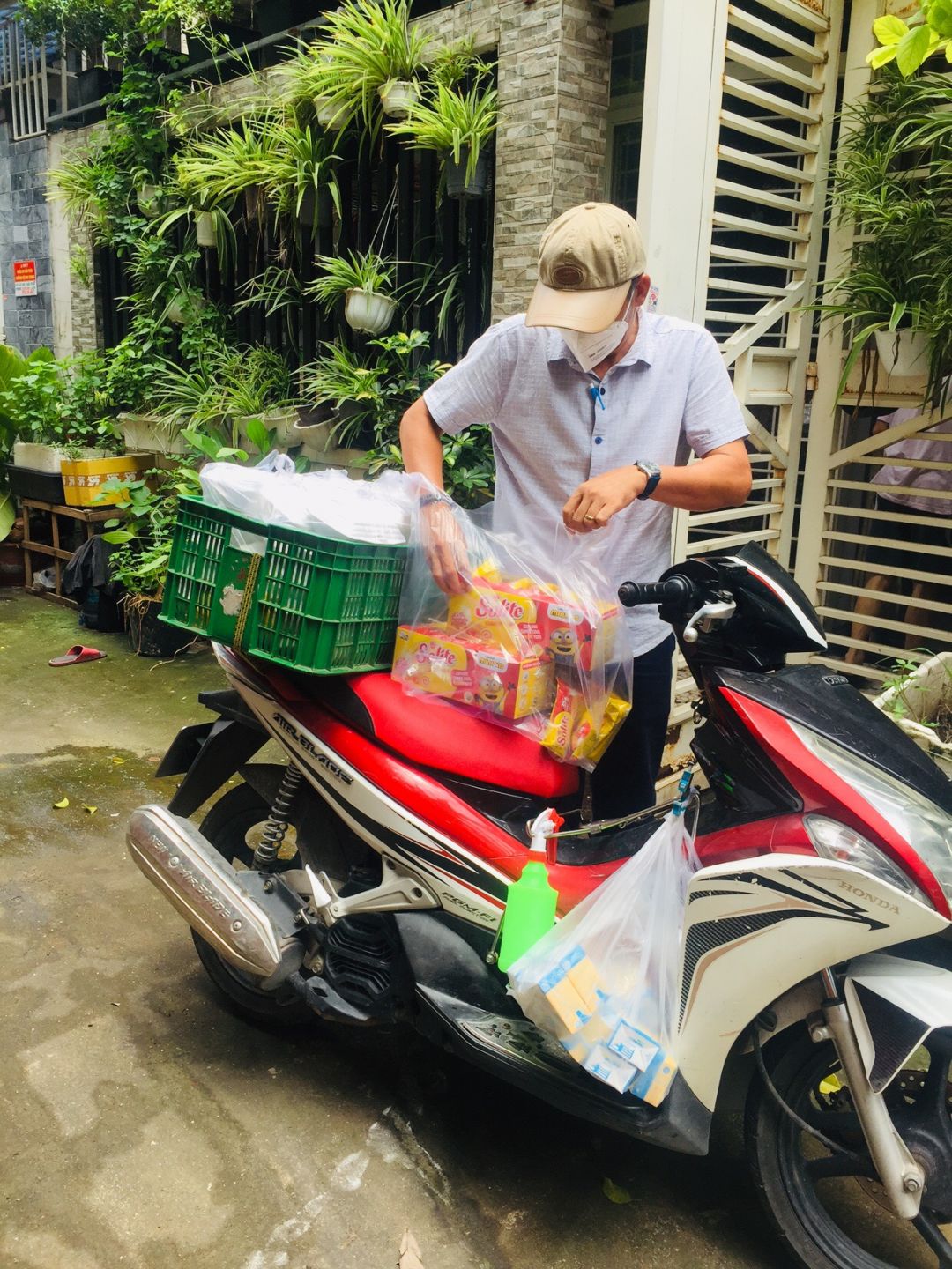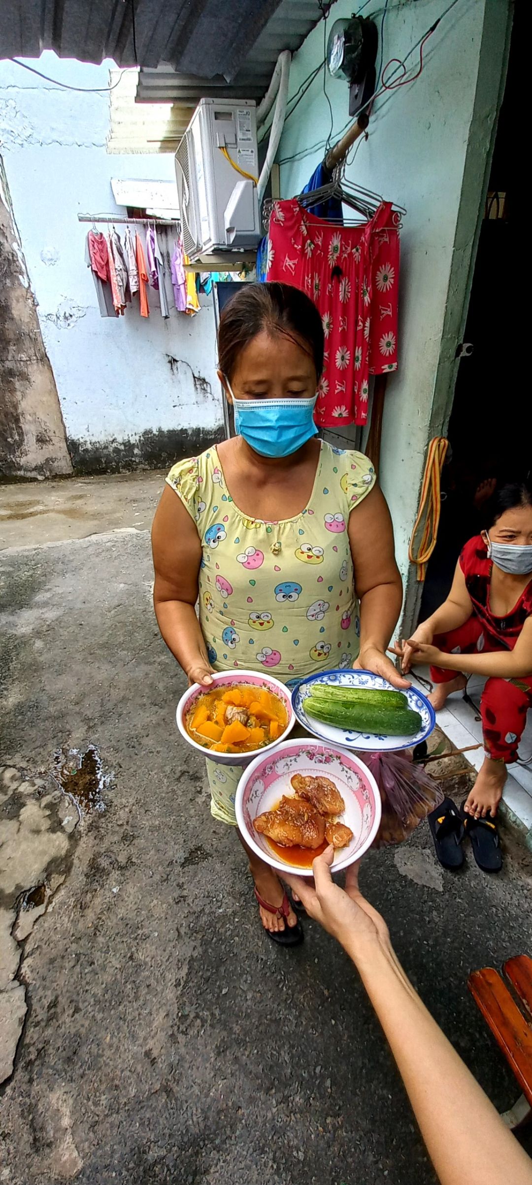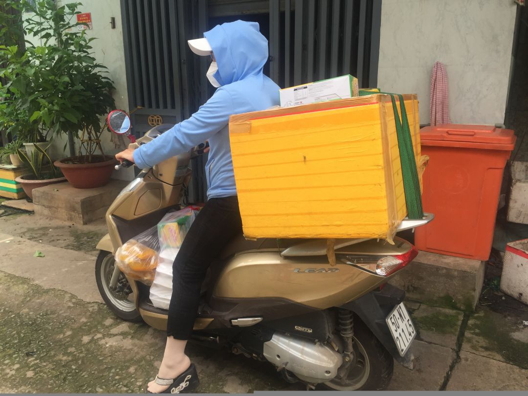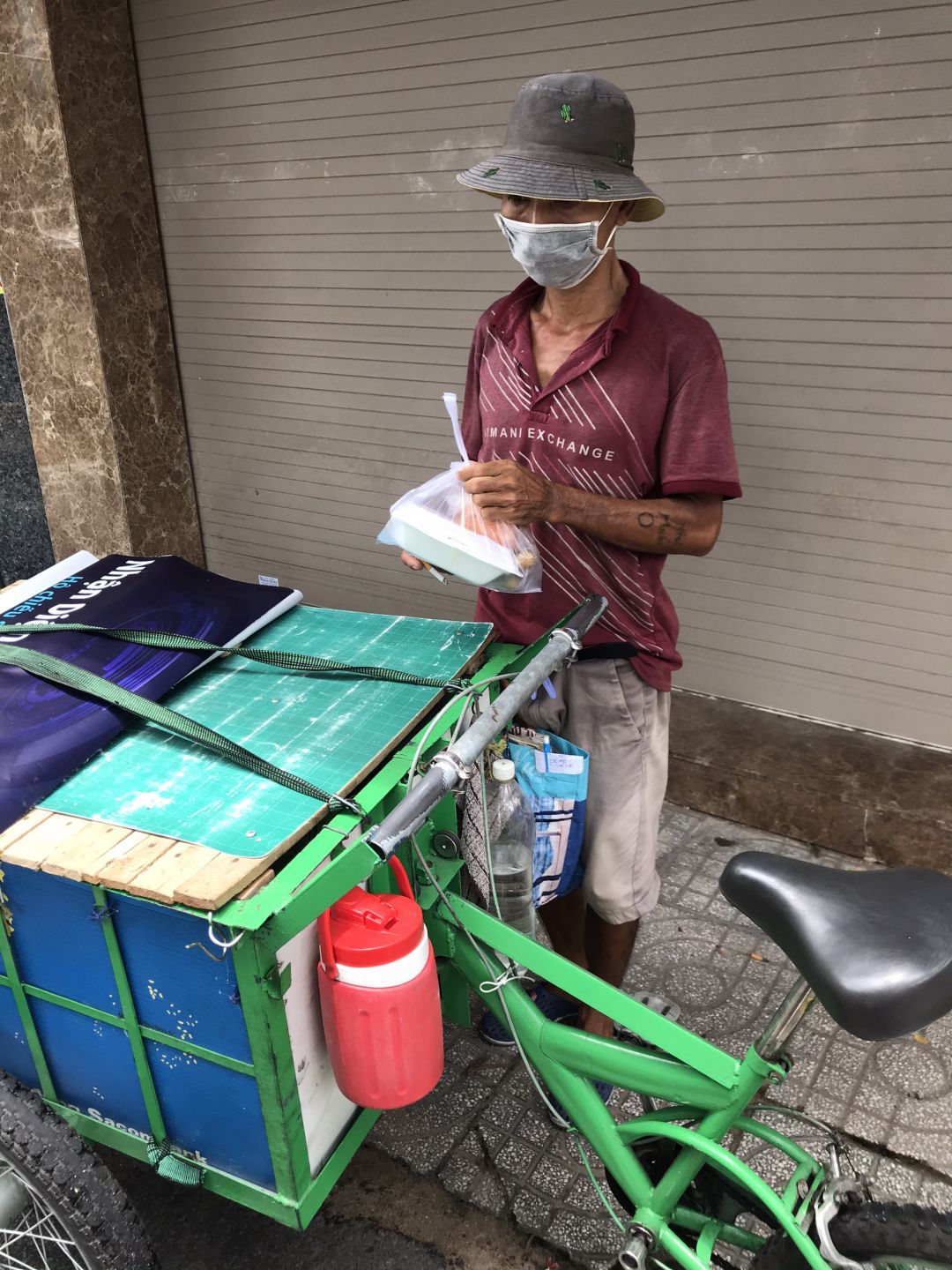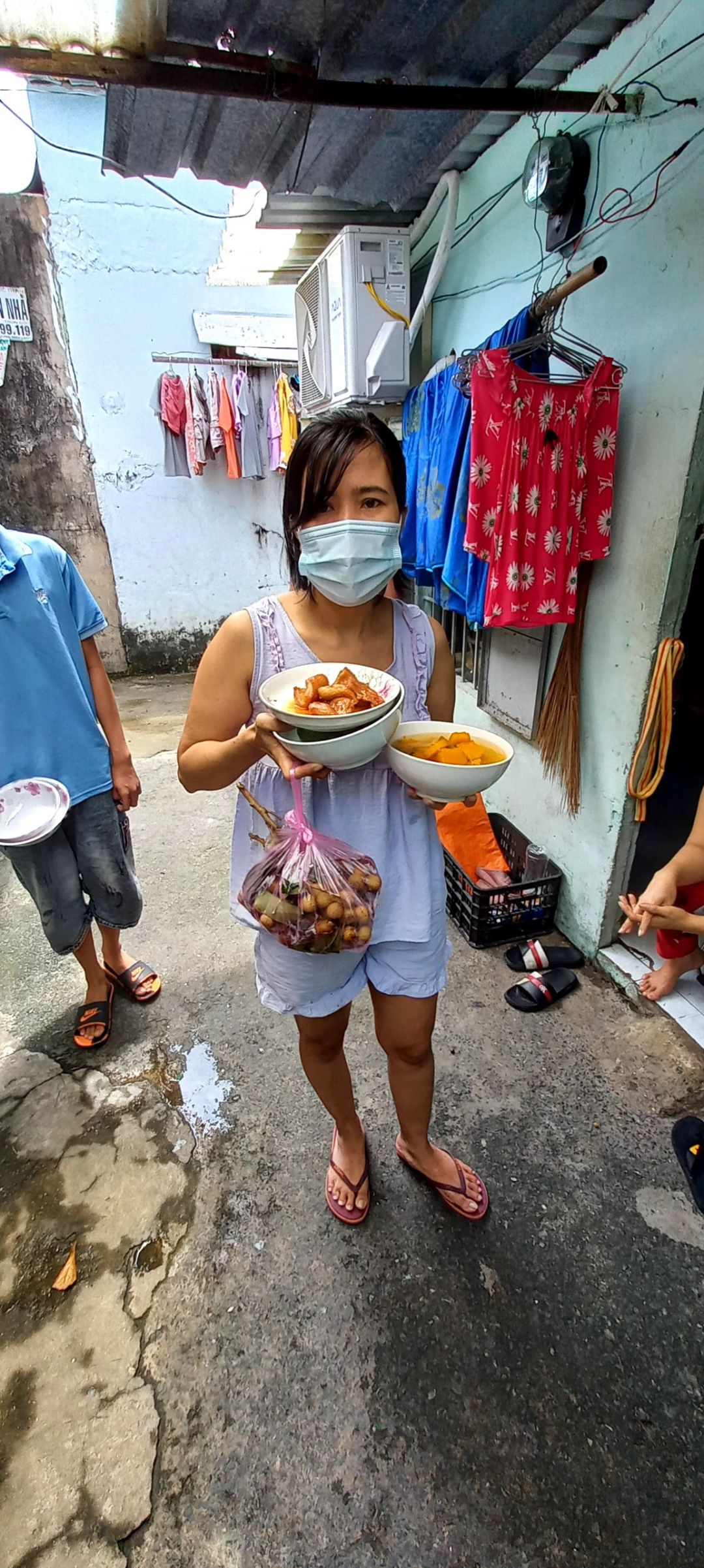 Sáng nấu 240 phần cơm chả cá chiên sốt cà chua và hành tây; bắp cải xào; canh bí đỏ+ sườn que. Nay thêm tráng miệng là ổi hoặc nhãn hoặc bánh solite cho các hộ cách ly và khó khăn
