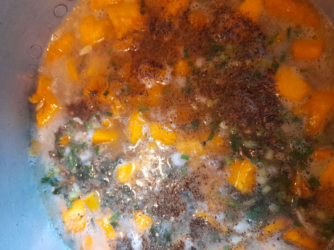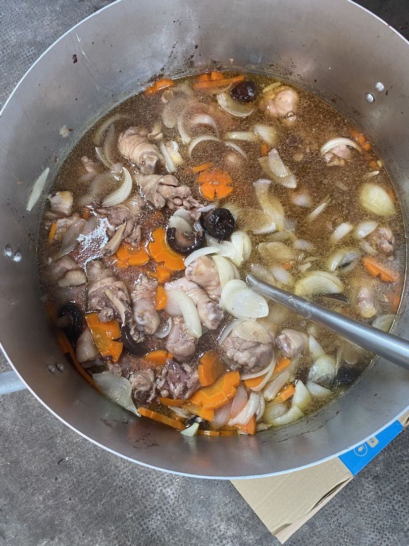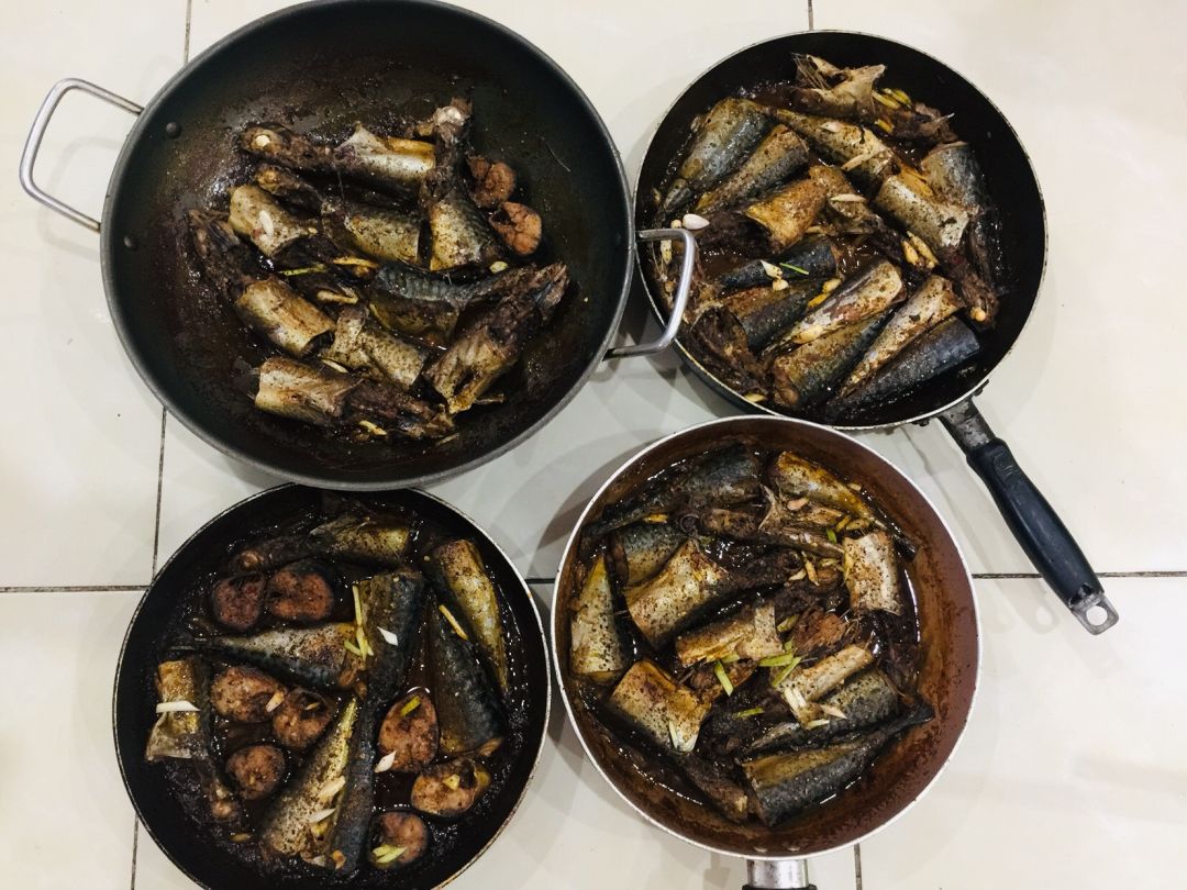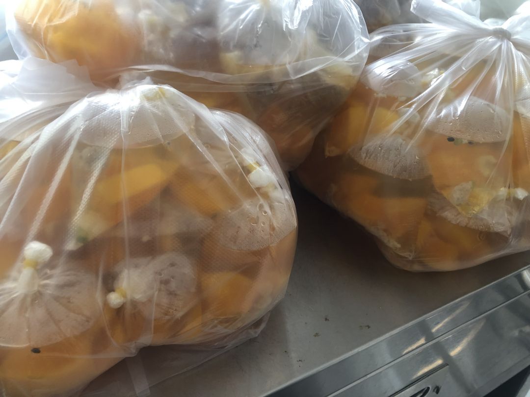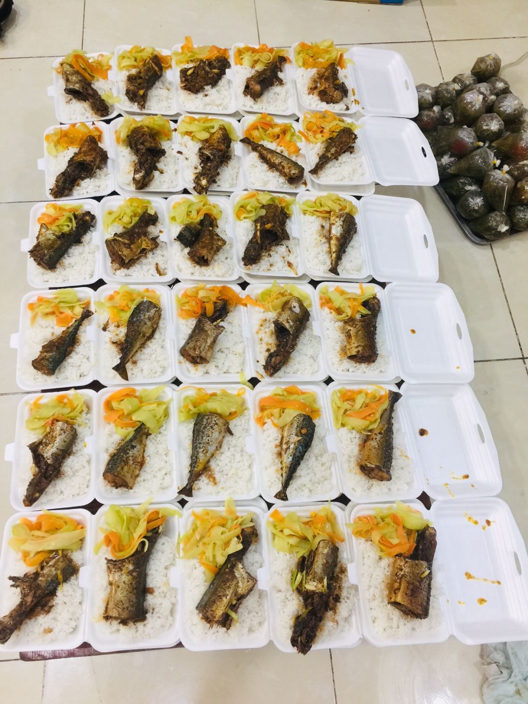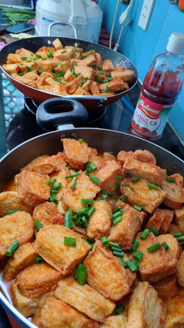 Chiều nấu 260 phần cơm chả cá chiên sốt cà chua và hành tây; bắp cải xào; canh bí đỏ+ sườn que. Nay thêm tráng miệng là ổi hoặc nhãn hoặc bánh solite cho các hộ cách ly và khó khăn.