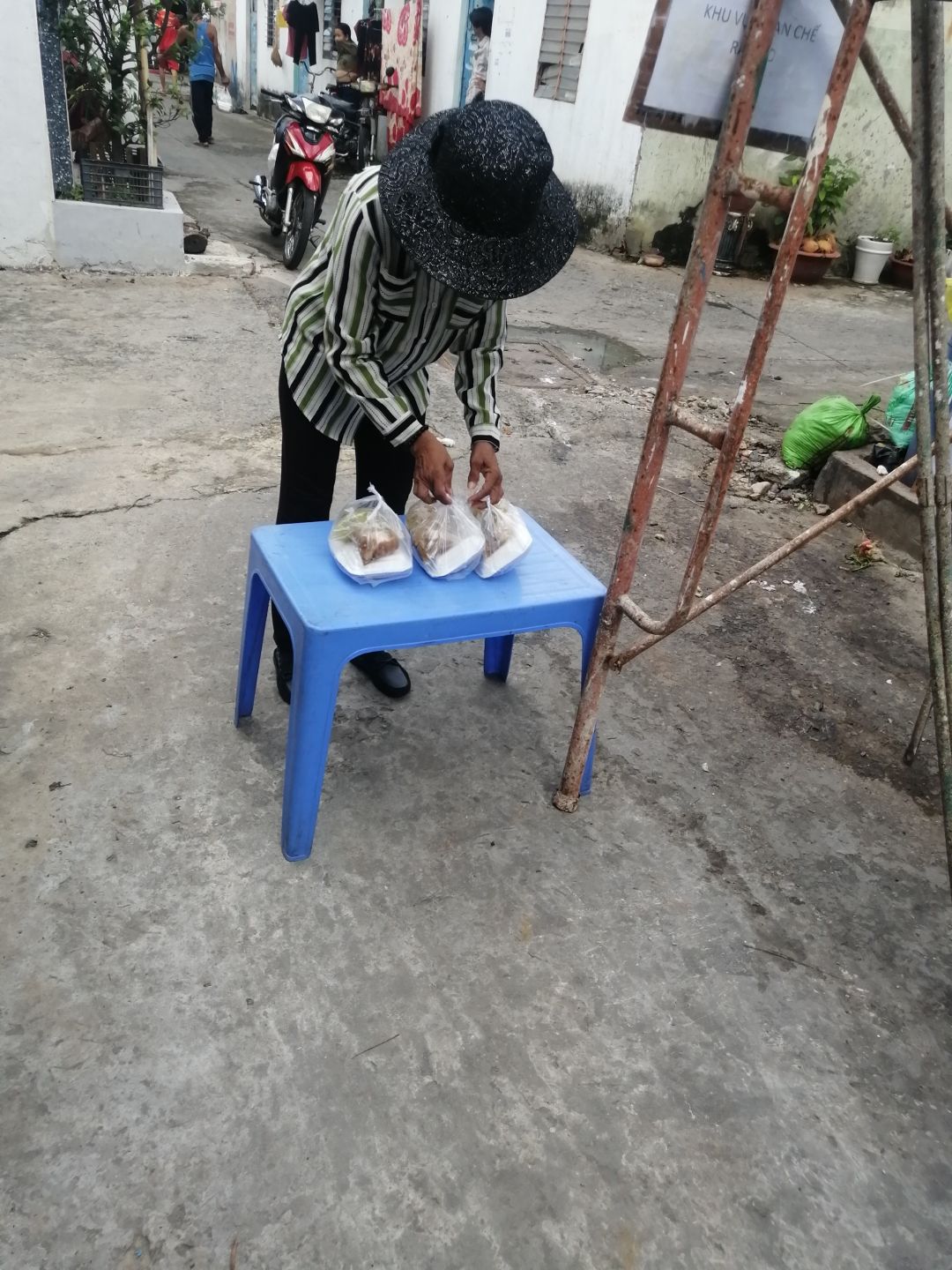 100 phần cơm cho các chiến sĩ công an tại địa bàn và bà con trong xóm trọ đang cách li thuộc phường Tân Phú q7