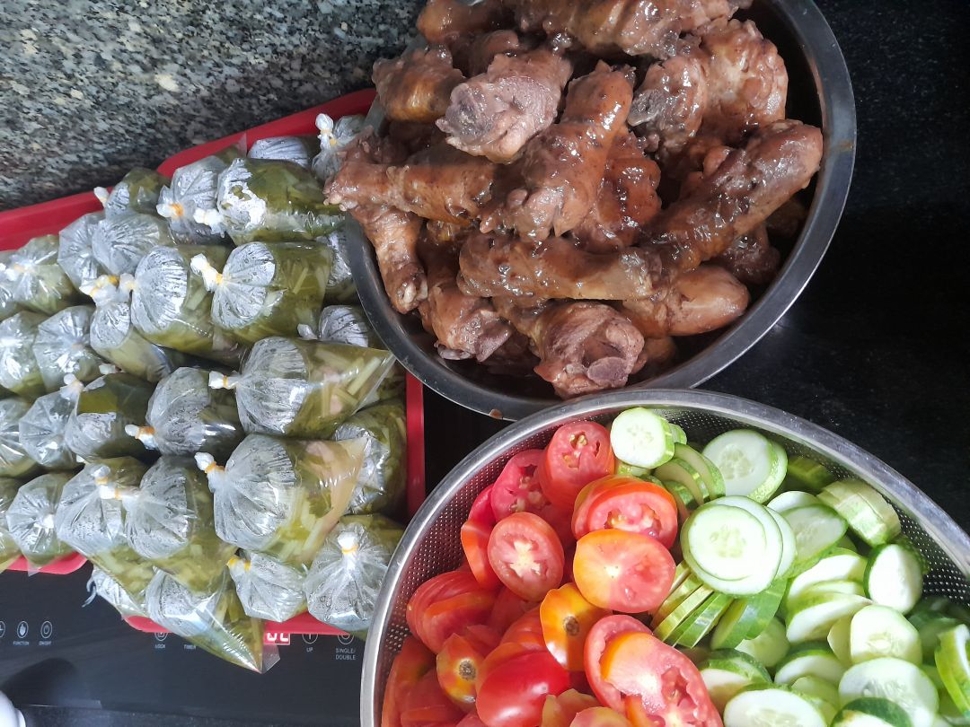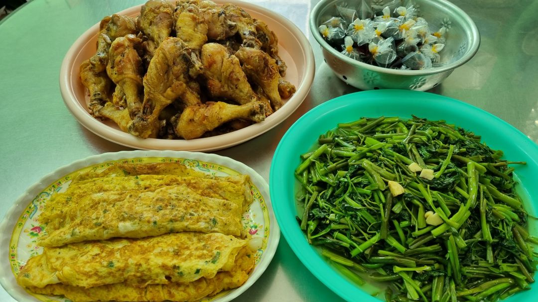Bếp nhà yêu thương Lathuvang: 45 suất với Đùi gà chiên. Trứng cuộn hành tây. Rau muống xào tỏi. Tráng miệng nhãn tiêu.