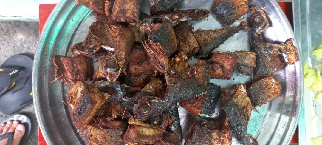Sáng nấu 225 phần cơm cá chiên sả ớt; rau muống xào tỏi; canh rau củ+ sườn que; bánh bông lan.