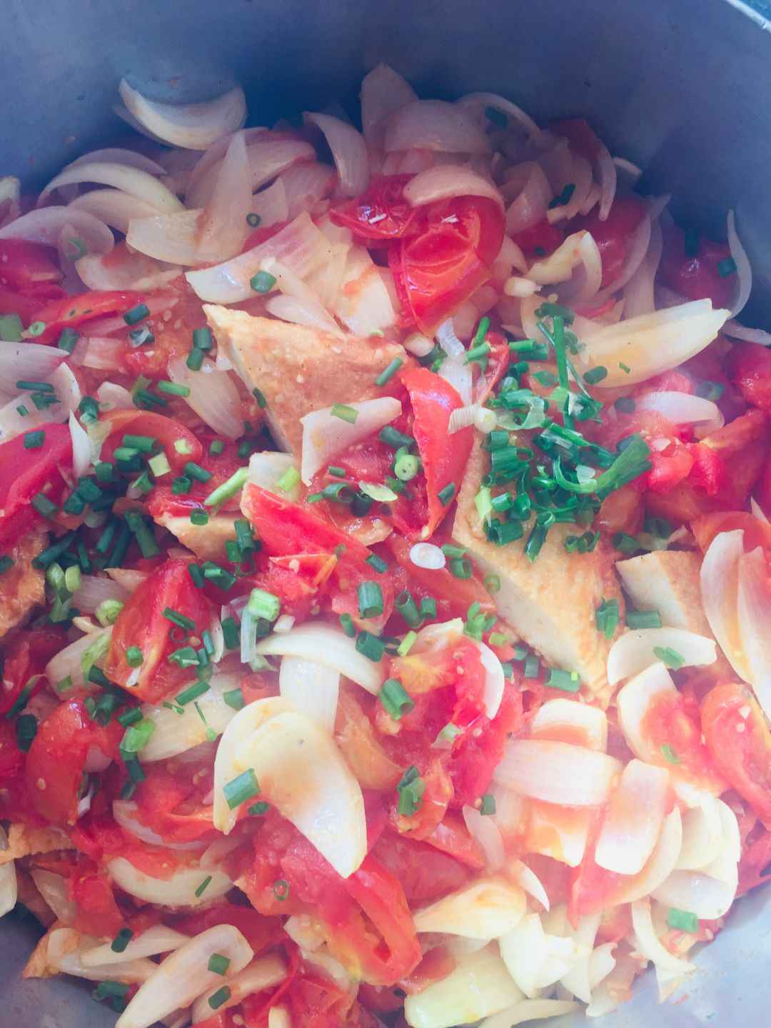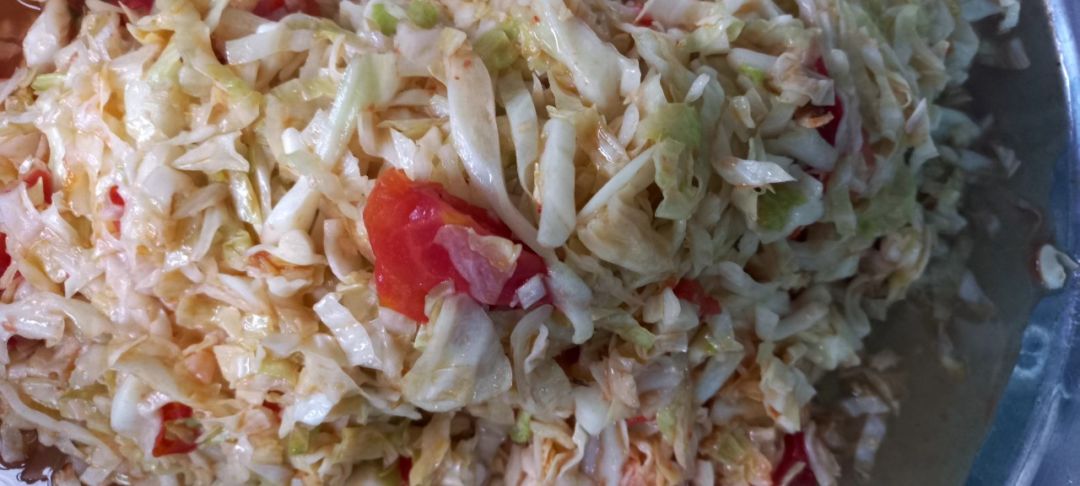 bắp cải xào với cà chua.