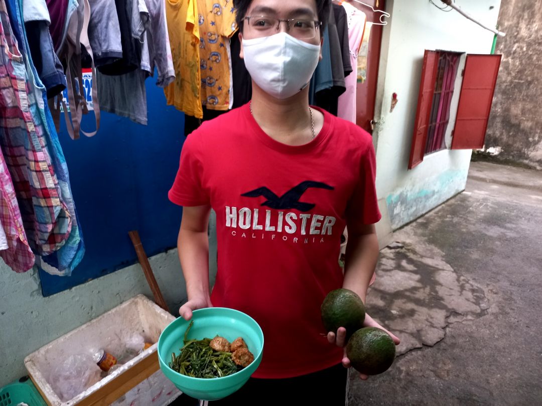 Hôm qua (2/09/2021), bếp nhà An có nhận 300kg bơ+ 200kg khoai lang từ anh Tú( Bếp nhà yêu thương) và hơn 200kg rau tươi từ 1 mạnh thường quân giấu tên. Ngày hôm nay đã cùng công an khu vực đem phân phát rau củ quả cho 439 hộ khu cách ly và f0 trong khu phố cho dù trời tối mưa tầm tã.