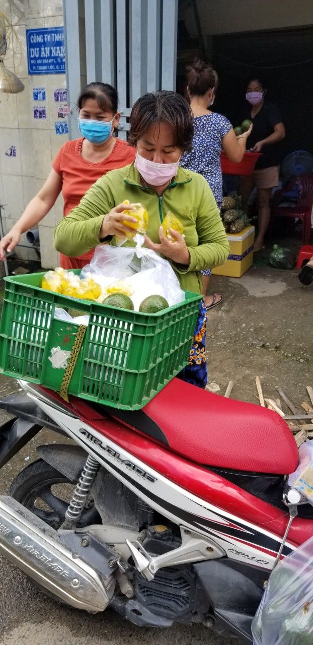- Đu đủ giao chị Hội chữ thập đỏ đi phát cho bà con.