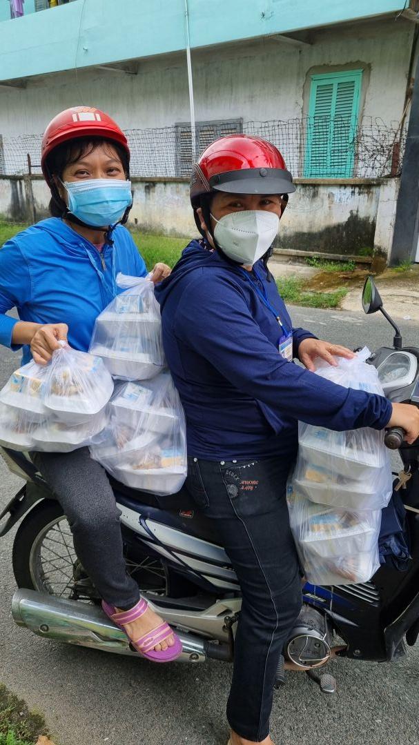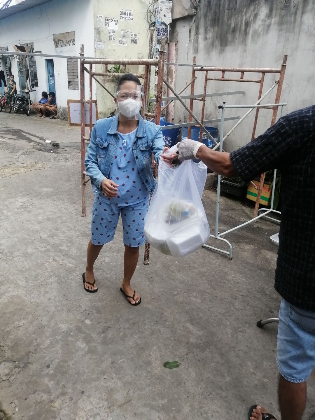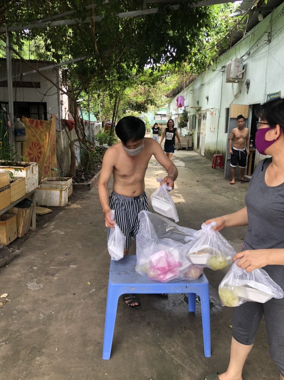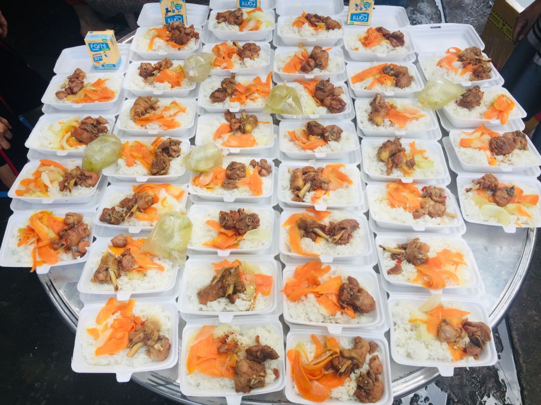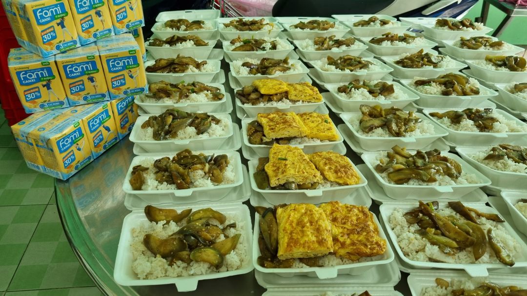 Cách thức chuyển cơm đến cho mọi người đi bộ (vì khu trọ cùng hẻm)
