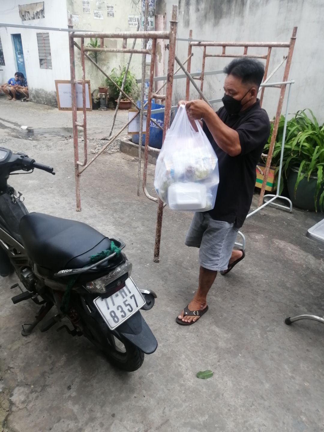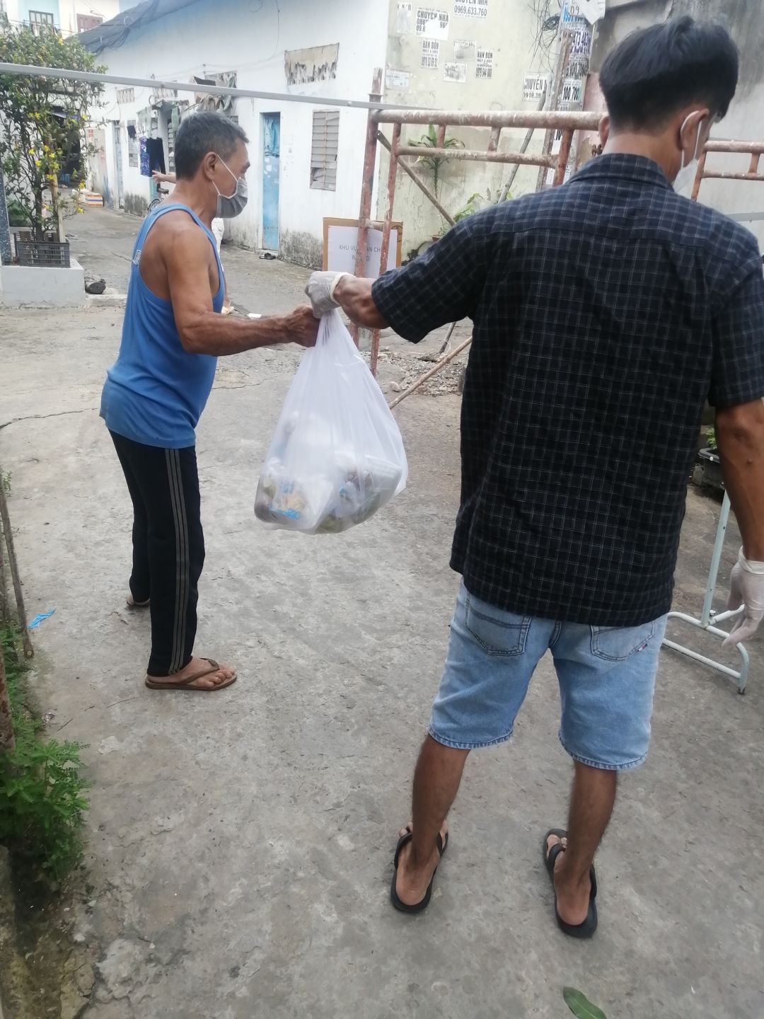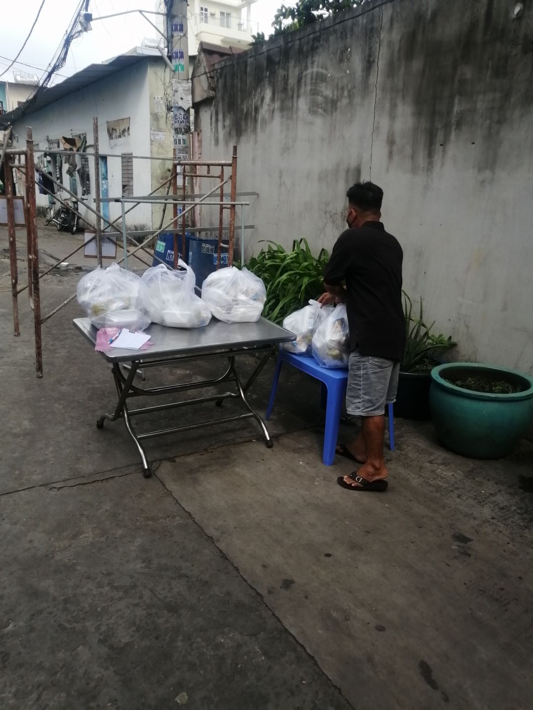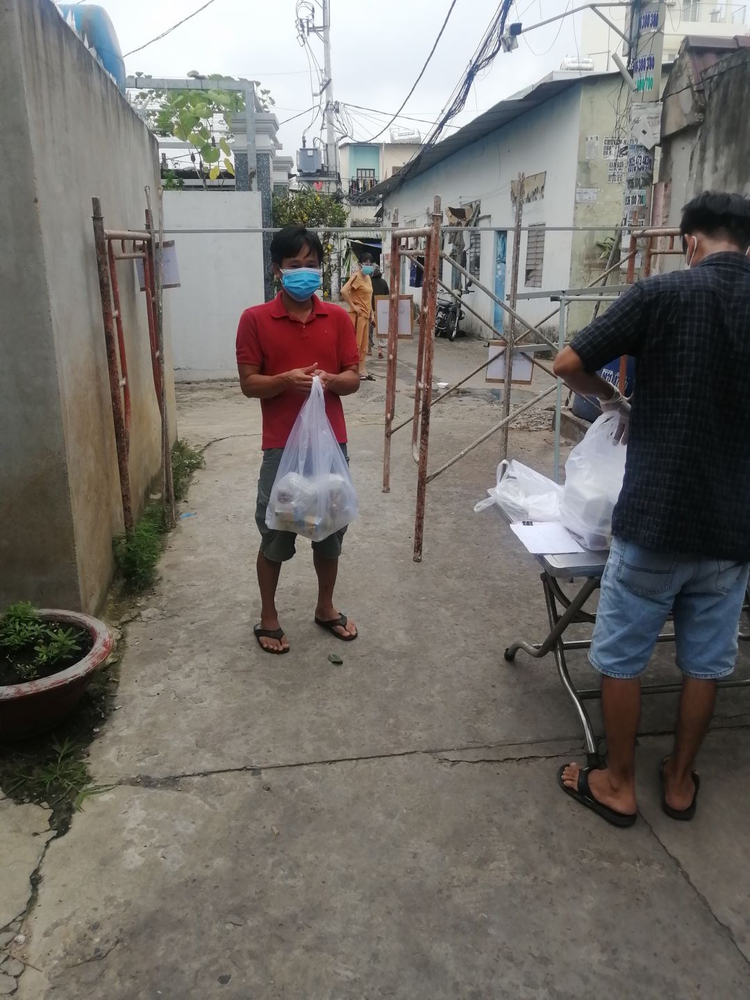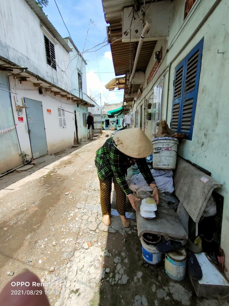 Cách thức chuyển cơm đến cho mọi người đi bộ (vì khu trọ cùng hẻm)