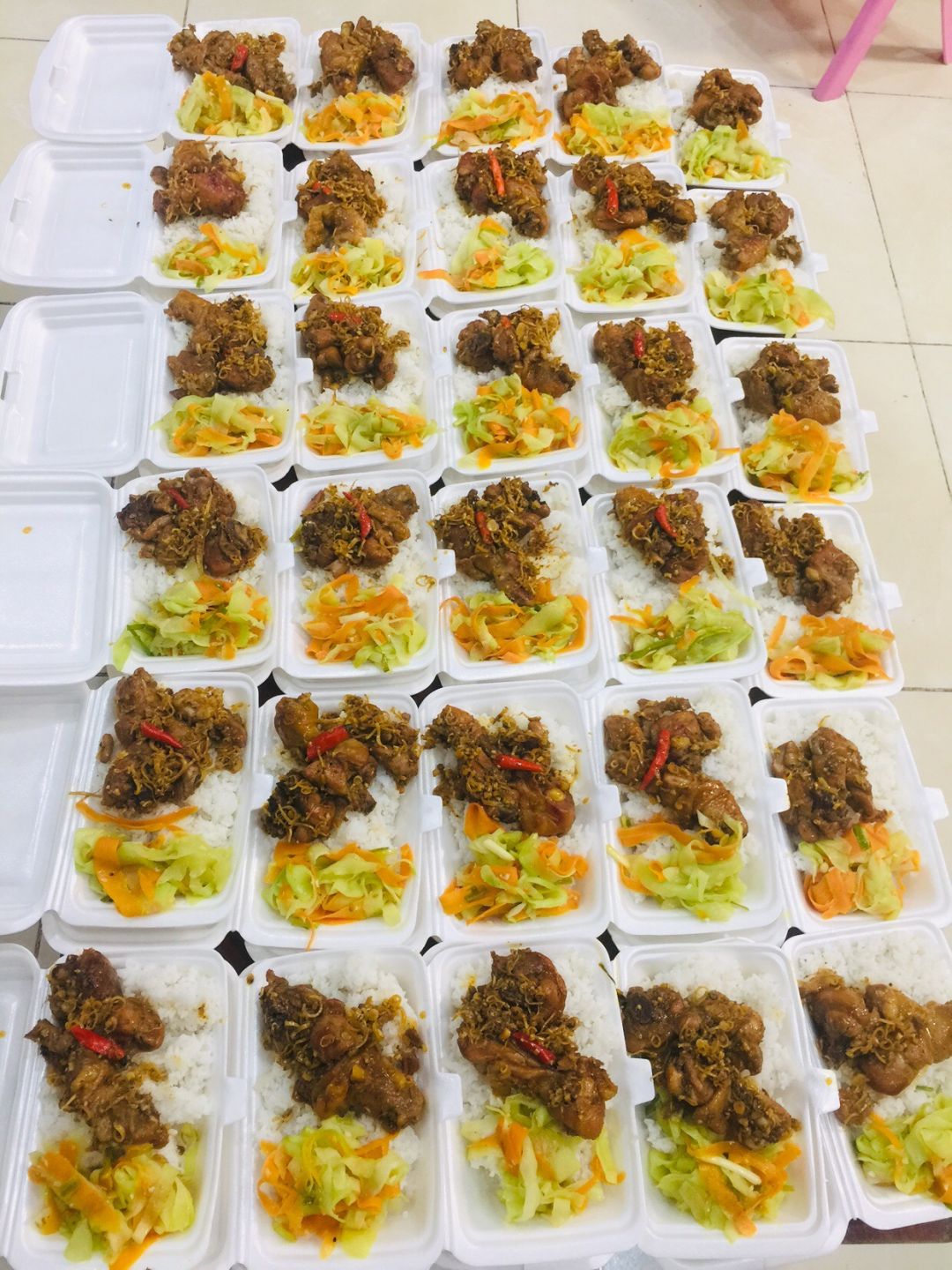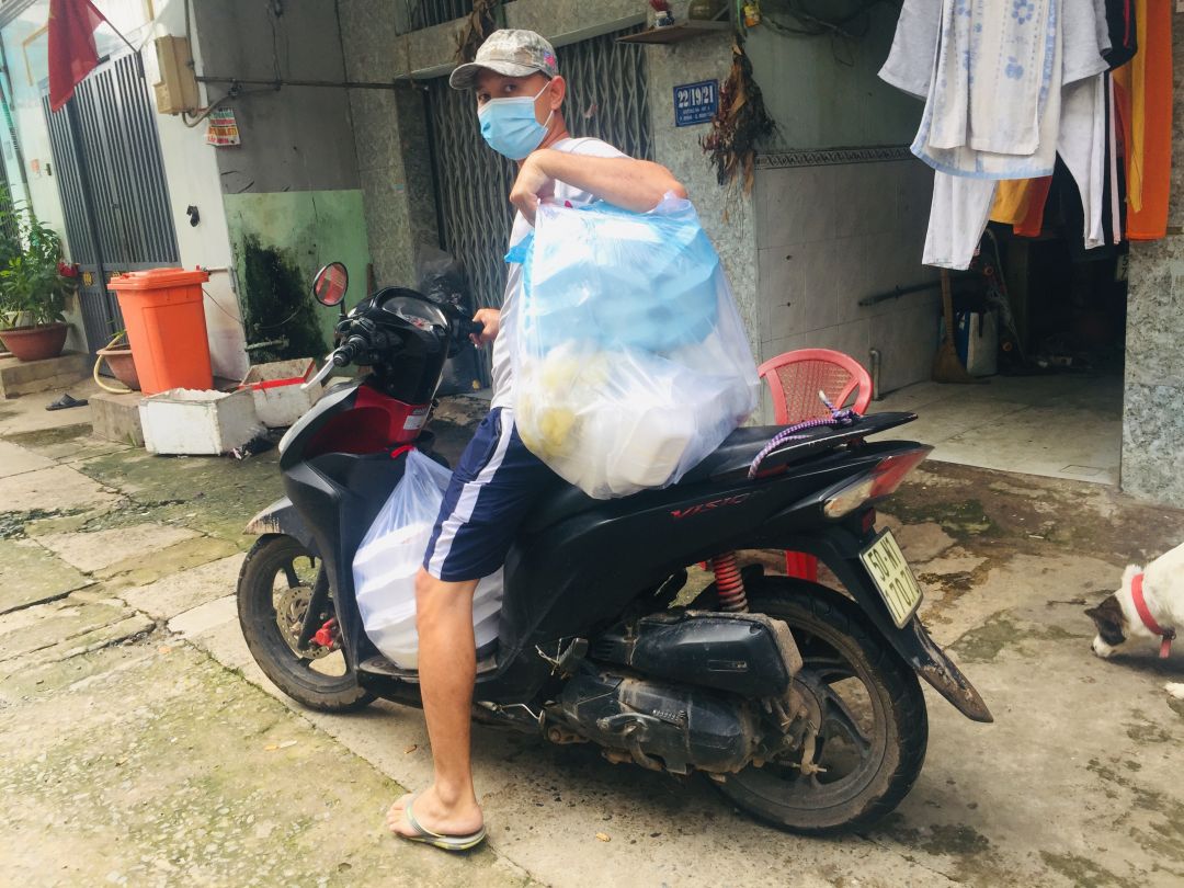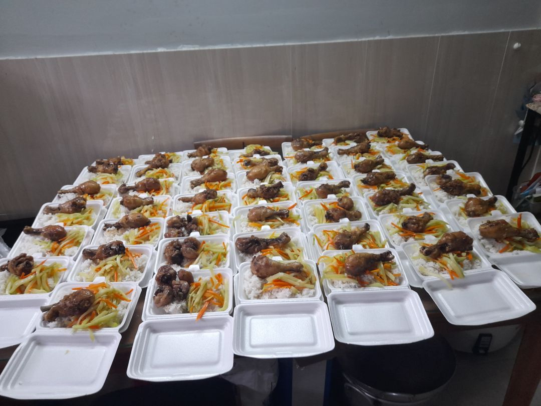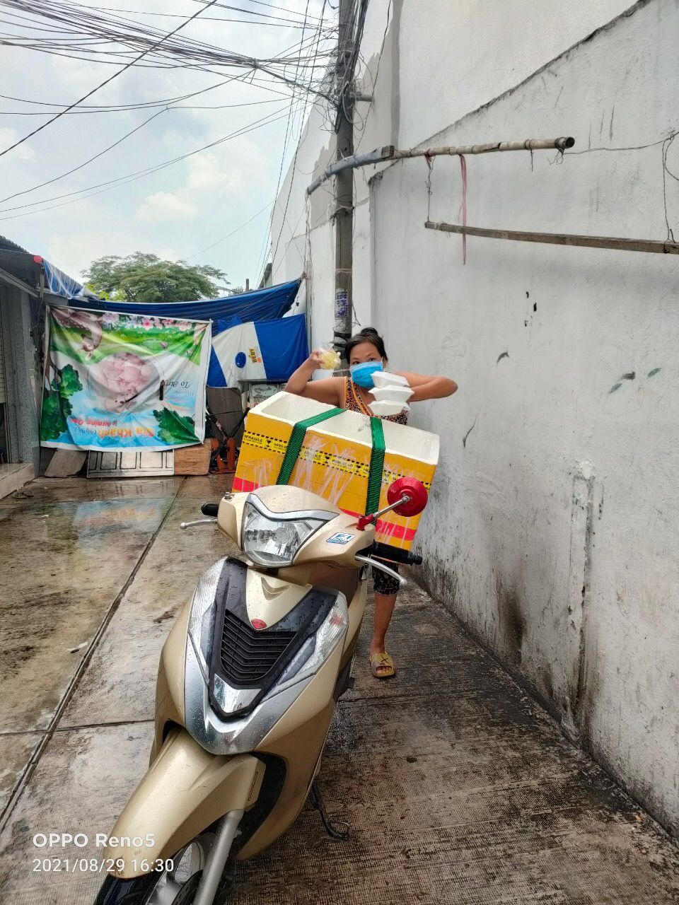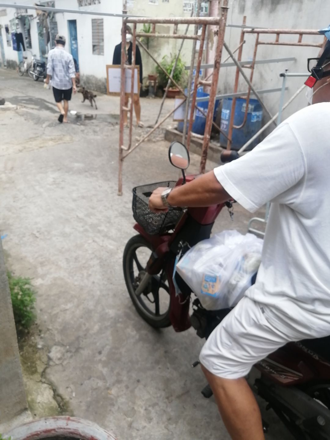 Cách thức chuyển cơm đến cho mọi người đi bộ (vì khu trọ cùng hẻm)