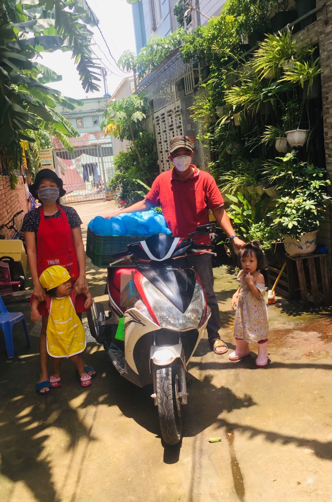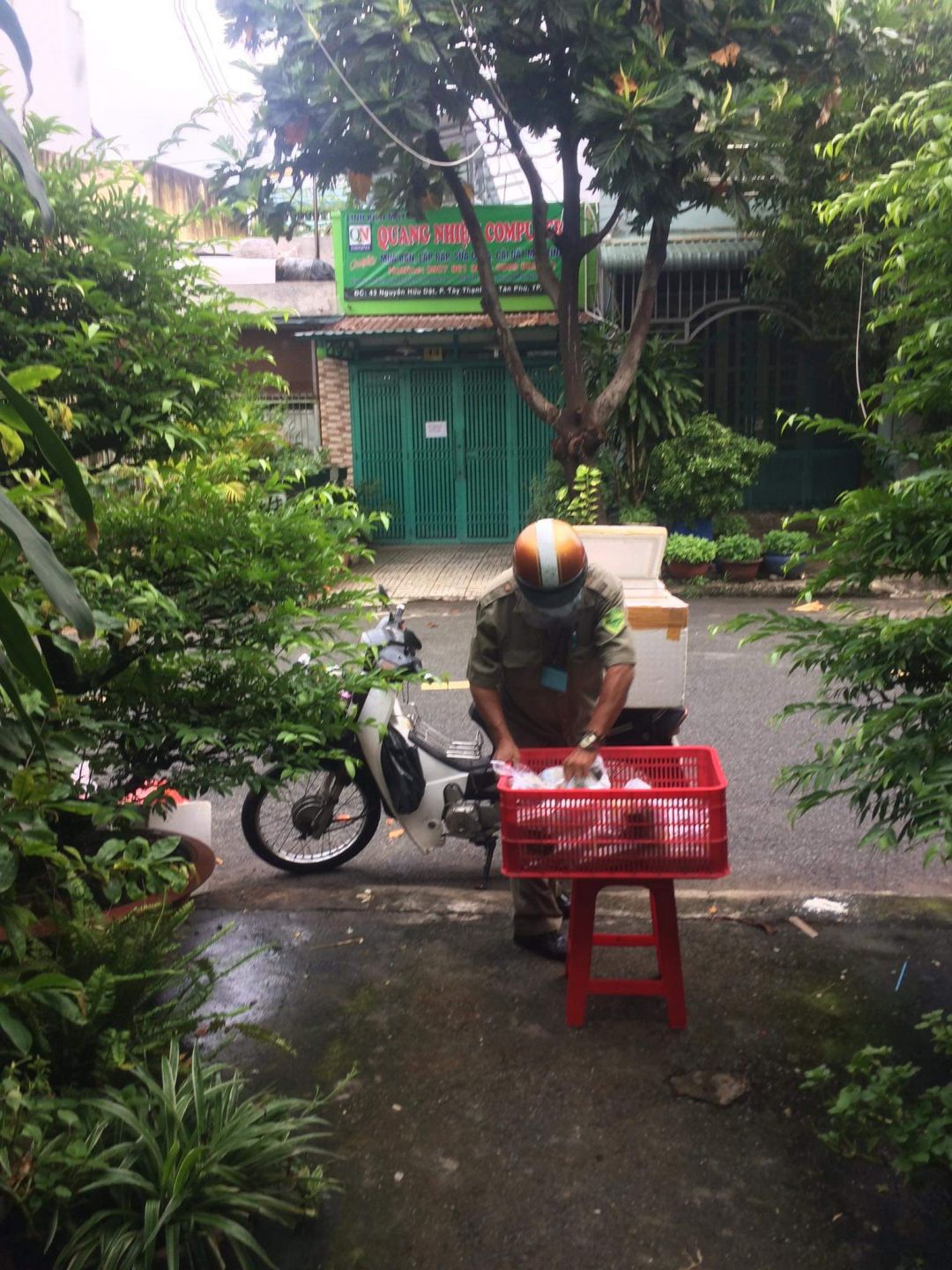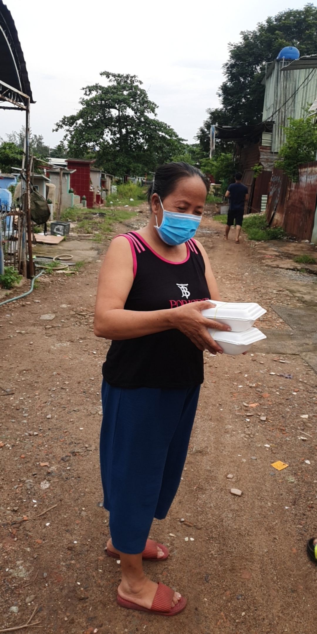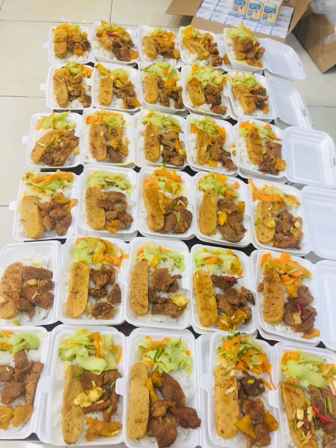 Cách thức chuyển cơm đến cho mọi người đi bộ (vì khu trọ cùng hẻm)