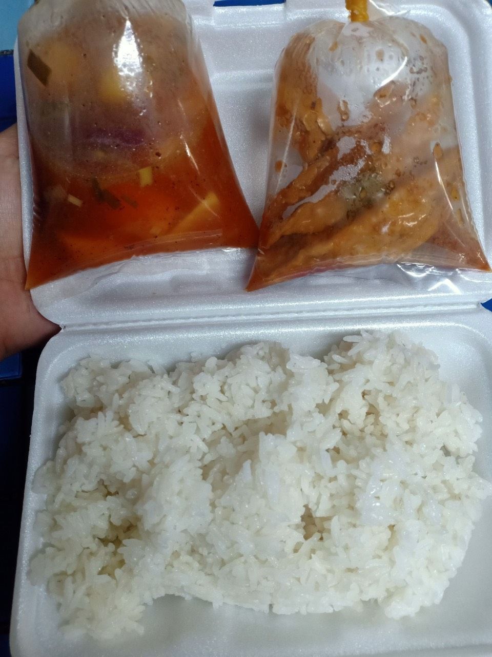 Bếp nhà Thiên Hải Anh ngày 26/8, trời hôm nay mưa dai dẳng suốt cả ngày, chúng ta thì được ở trong nhà trùm chăn nếu lạnh nhưng các chiến sỹ, các nhân viên y tế và tình nguyên viên thì vẫn phải làm nhiệm vụ chăm lo sức khỏe, chăm lo nhu cầu thực phẩm cho những hộ dân trong khu cách ly. Cơm gà nóng hổi đây ạ, chúc mọi người ngon miệng 😋😋😋