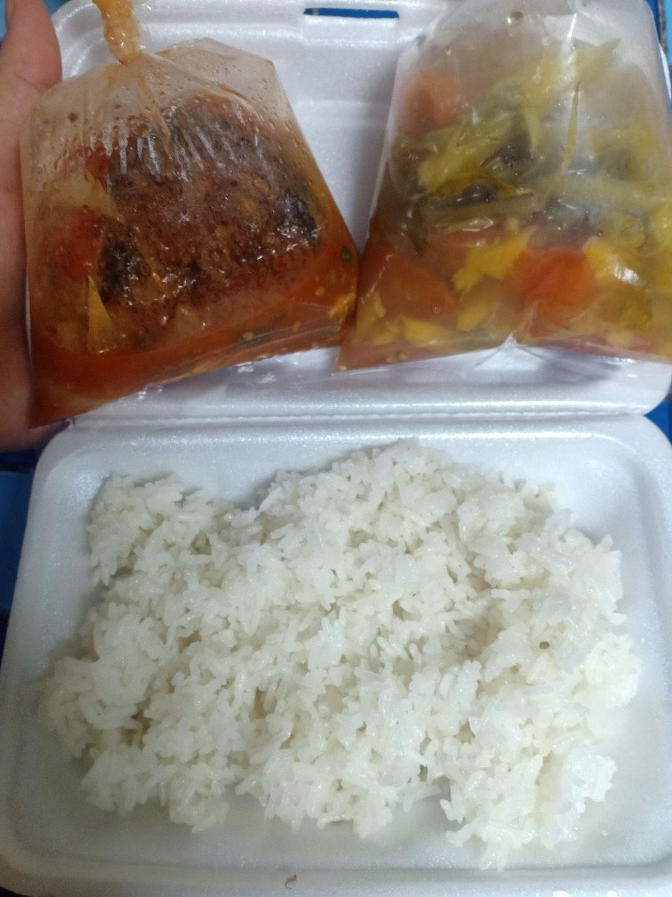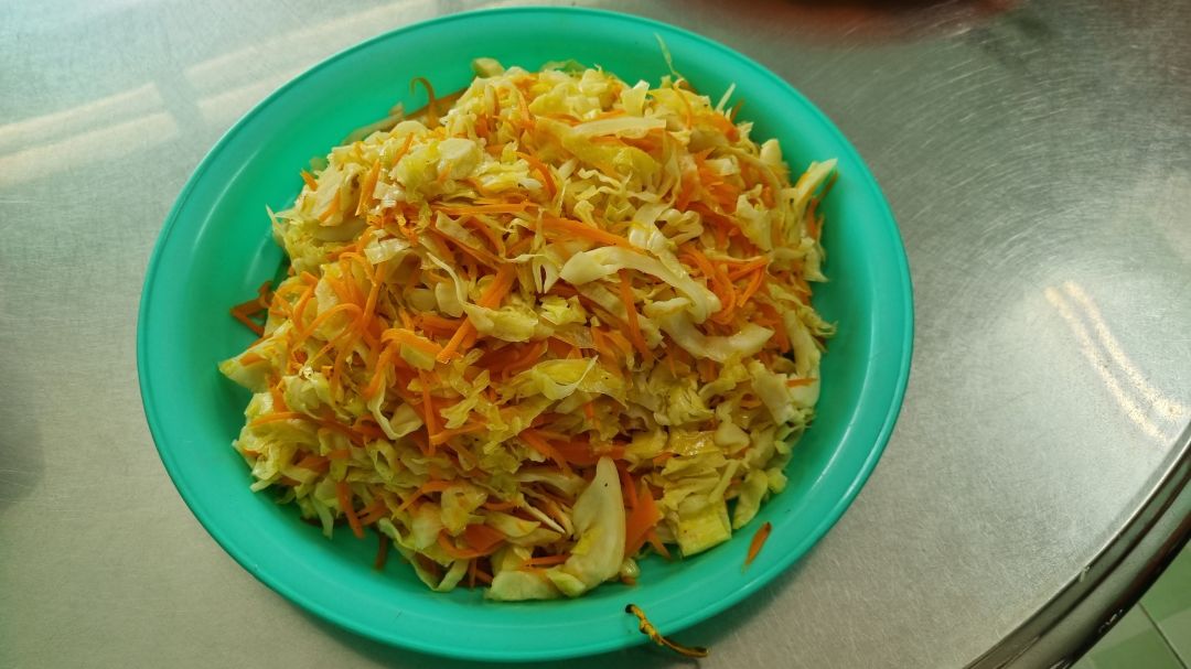 Sáng nấu 230 phần cơm cá saba chiên sốt cà; cà rốt+ su su+ bắp cải xào tỏi tây; canh cải thảo+ sườn que và sữa Fami