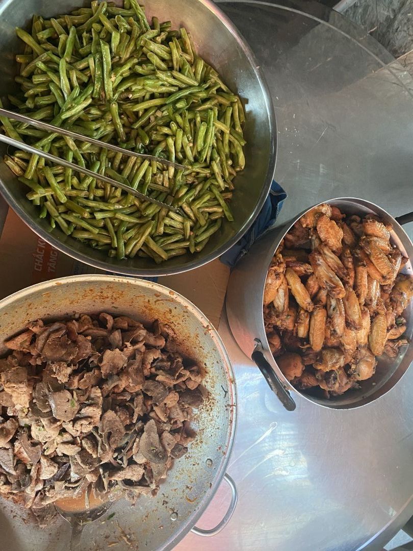 Bếp nhà yêu thương Lathuvang hôm nay: 32 suất với Gà kho sả cary. Bắp cải cà rốt xào tỏi. 1 hộp sữa đậu nành Fami. 3 trái chuối sáp luộc( do cựu SV trường DLSG tặng).