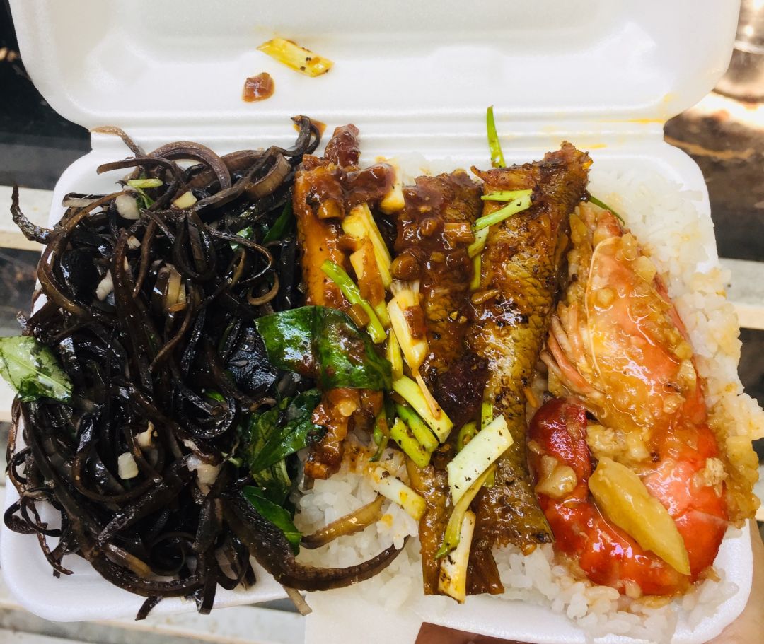 Tôm càng xanh rim bơ tỏi+ cá bống kho tiêu
