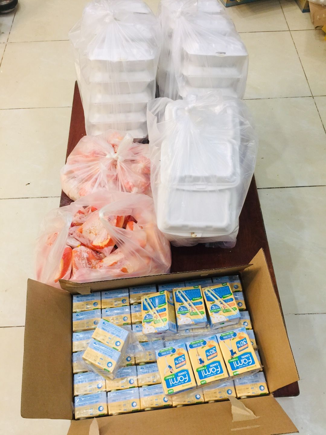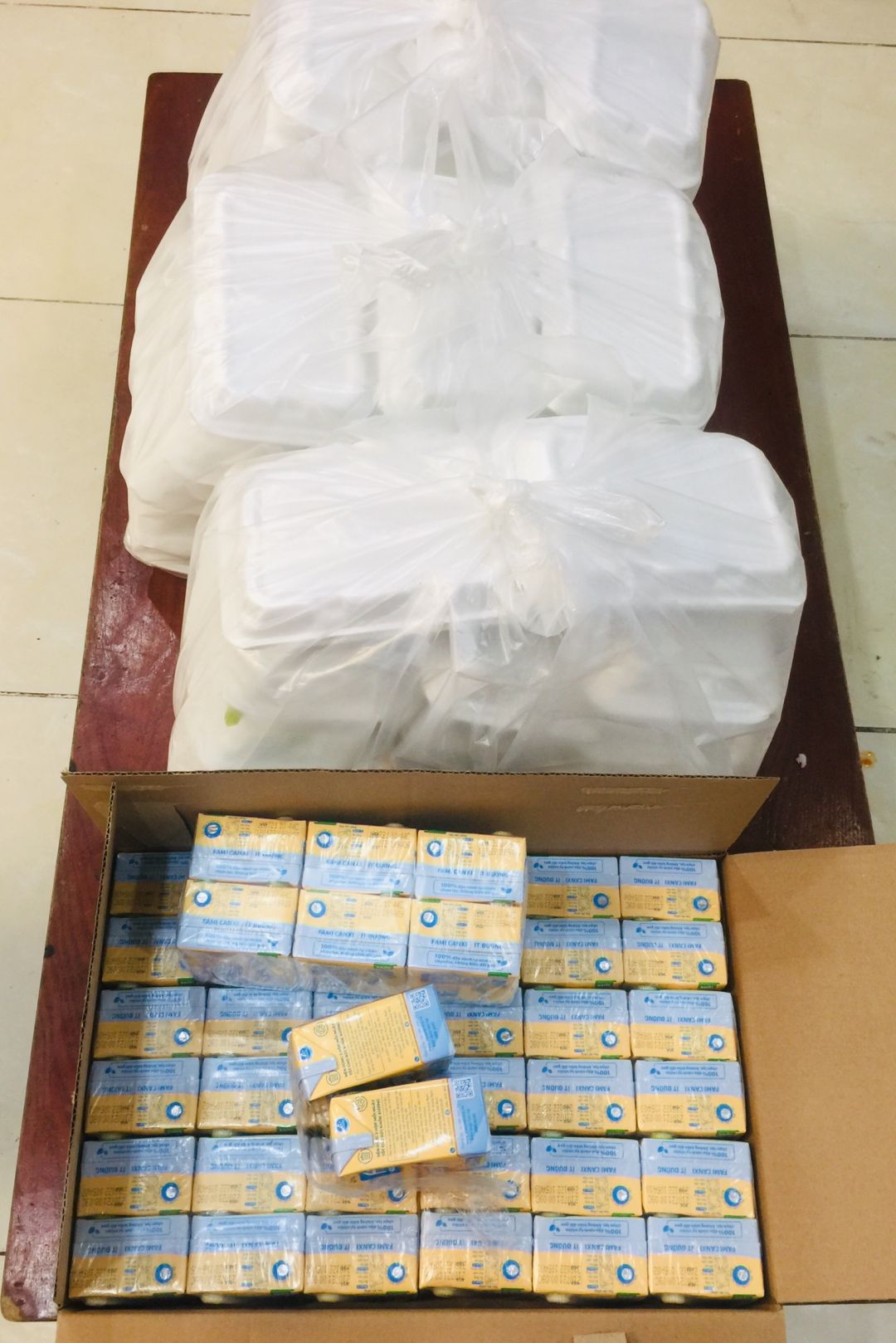 P/s: Sáng nay mình vừa nhận được lương thực từ bạn Tú gồm có 10 thùng sữa Fami, thiết nghĩ các chú Công an sẽ không dùng sữa nên mình tặng lại cho anh Phúc - người vận chuyển lương thực giúp bếp.